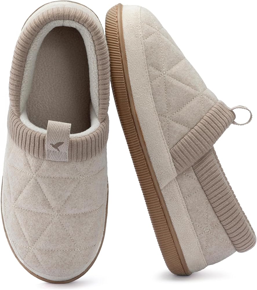 Quilted Comfort & Easy Fit: Our slippers boast a stylish quilted upper for timeless elegance, paired with a snug stretchable collar to ensure a secure, comfortable fit that's easy to slip on for all-day lounging.