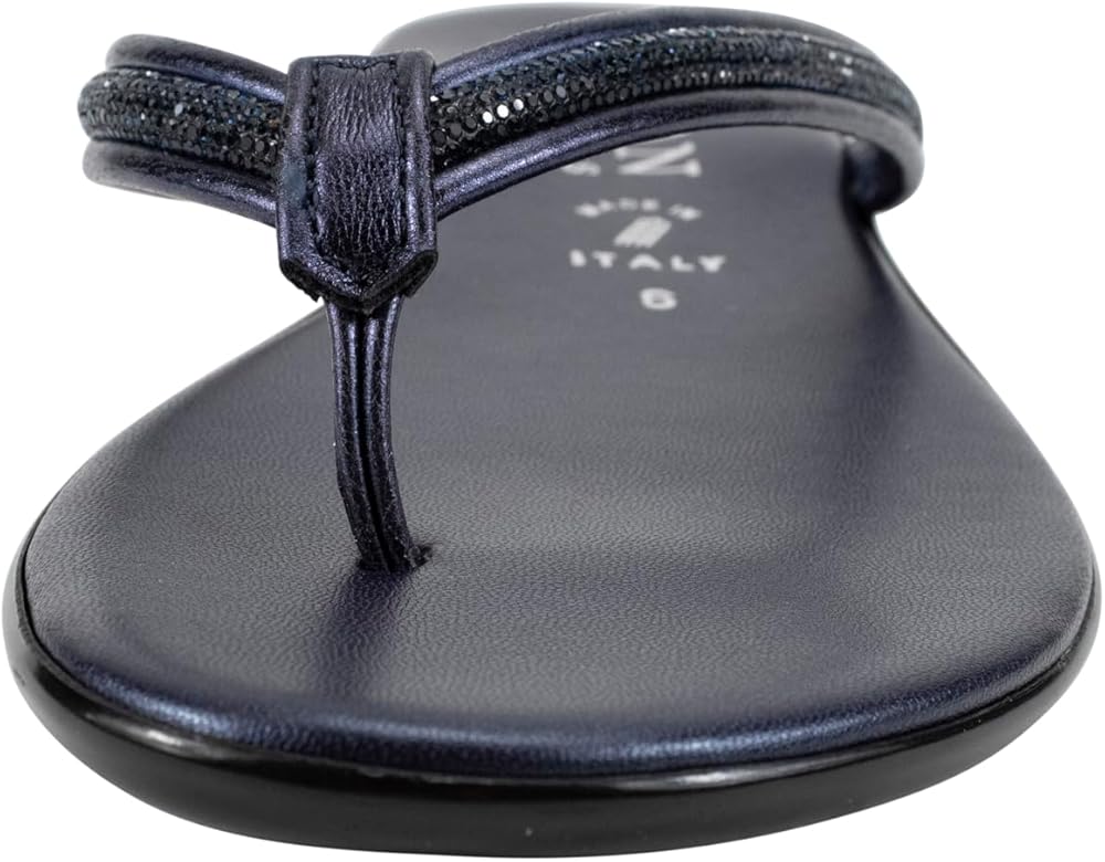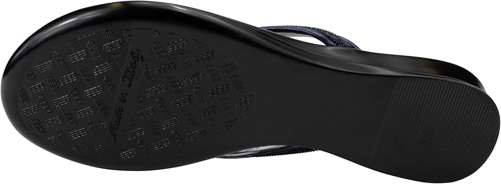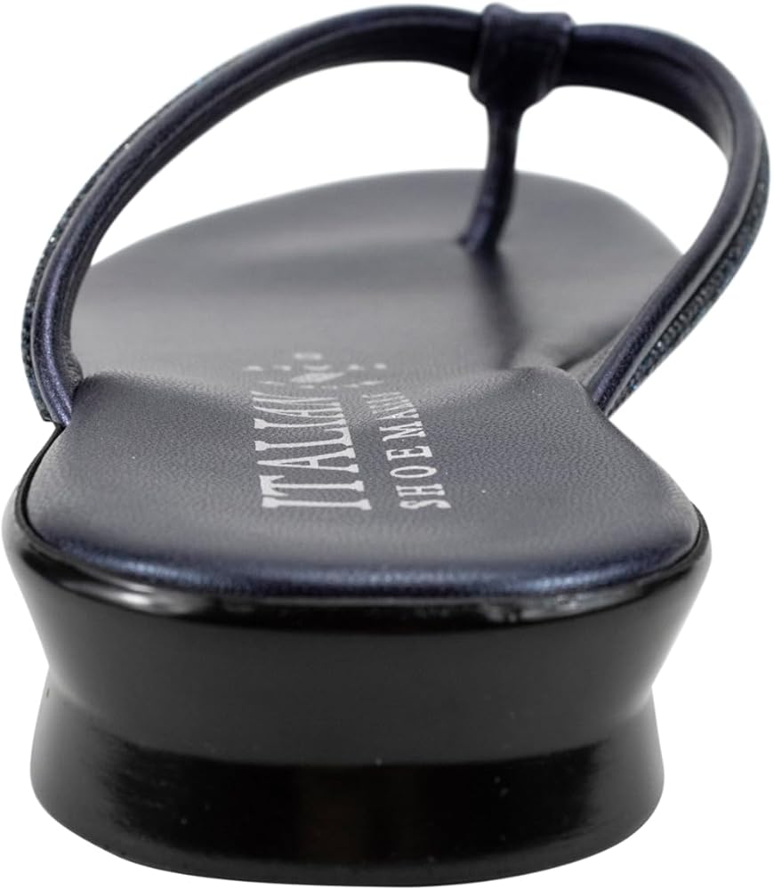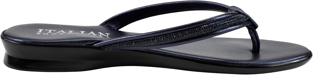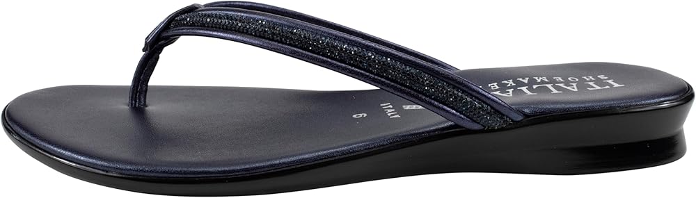 The Italian Shoemakers Women's Wilda thong sandal is the perfect blend of style and comfort for the warm weather season. Featuring a padded footbed that provides cushioned support with every step, these sandals offer all-day wearability. The 1-inch (2.54 cm) wedge heel adds a subtle lift, while the rhinestone embellishment on the strap adds a touch of glamour. The comfort toe bar ensures a secure fit, preventing your feet from sliding forward. Available in versatile colors like black, white, navy, and natural, these sandals can effortlessly complement any outfit. Whether you're strolling along the beach or running errands around town, the Italian Shoemakers Women's Wilda thong sandal is a must-have addition to your summer footwear collection.