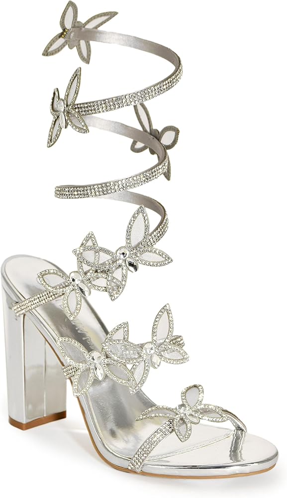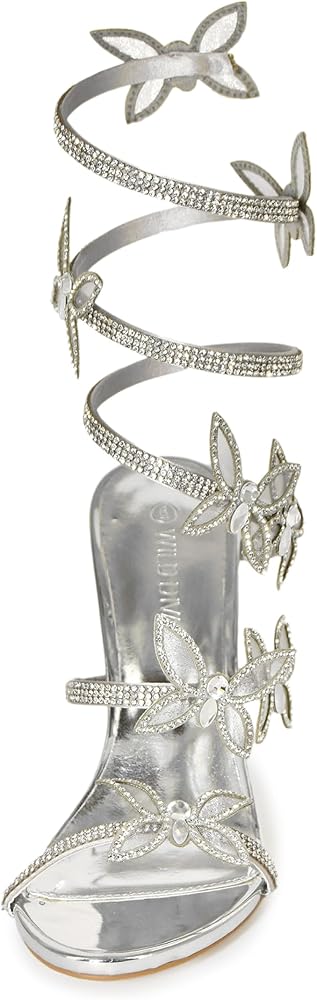Wild Diva Women's Morris-581 Rhinestone Butterfly Detail Spiral Coil Wrap Around Chunk Heel