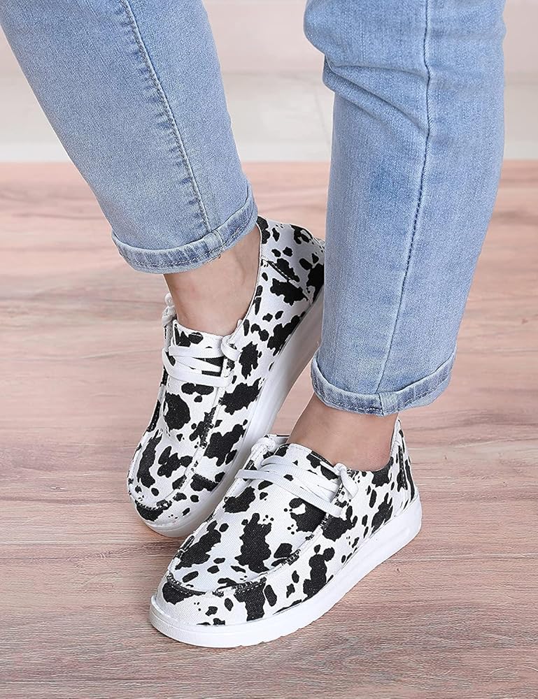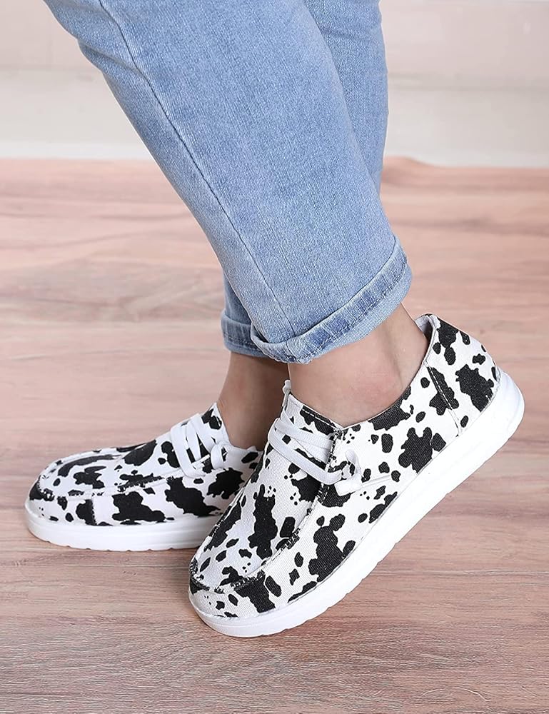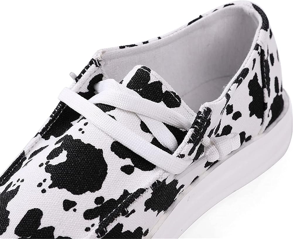 Cow Print Shoes Canvas Sneakers for Women Slip-Ons Flats Ladies Loafers