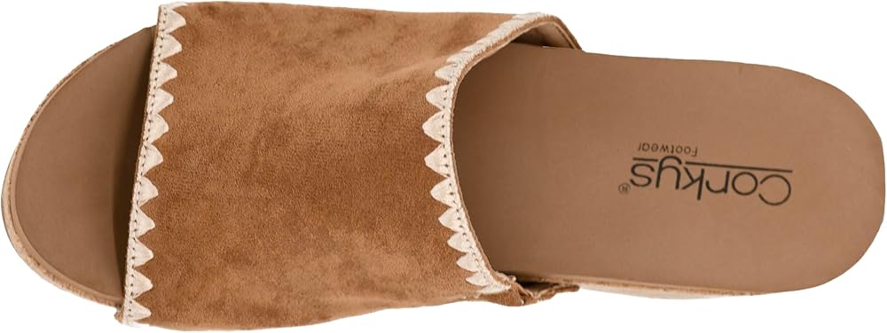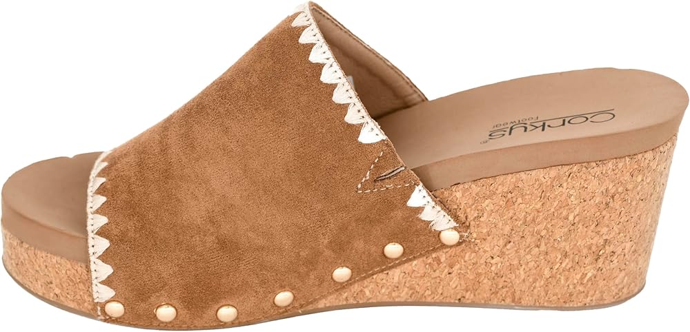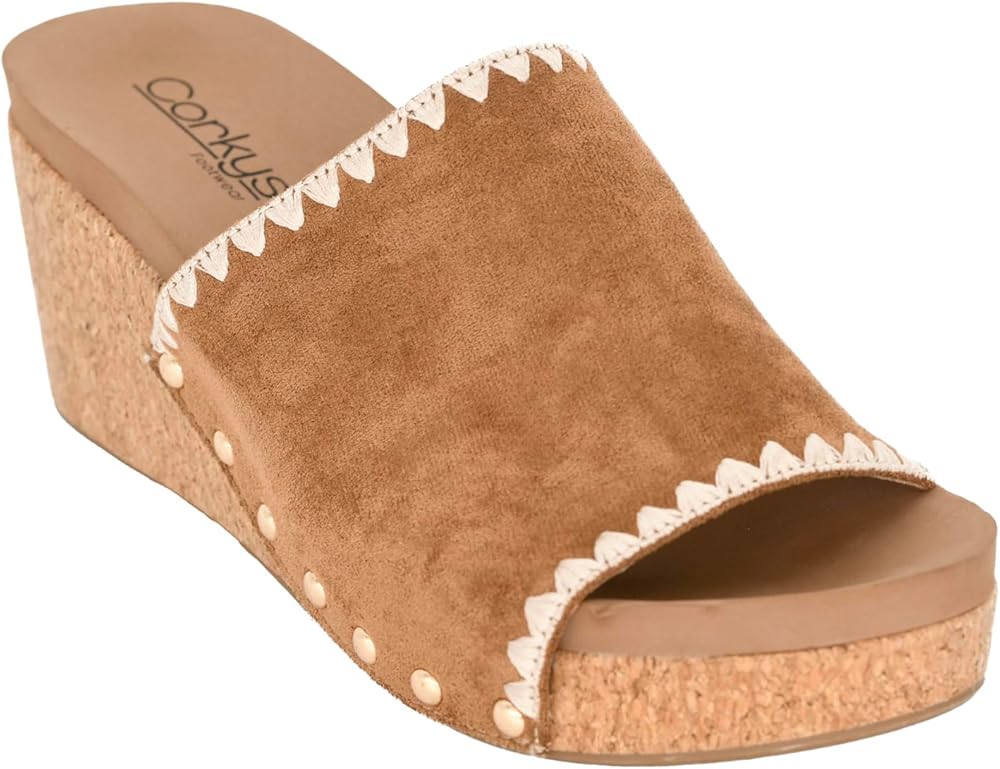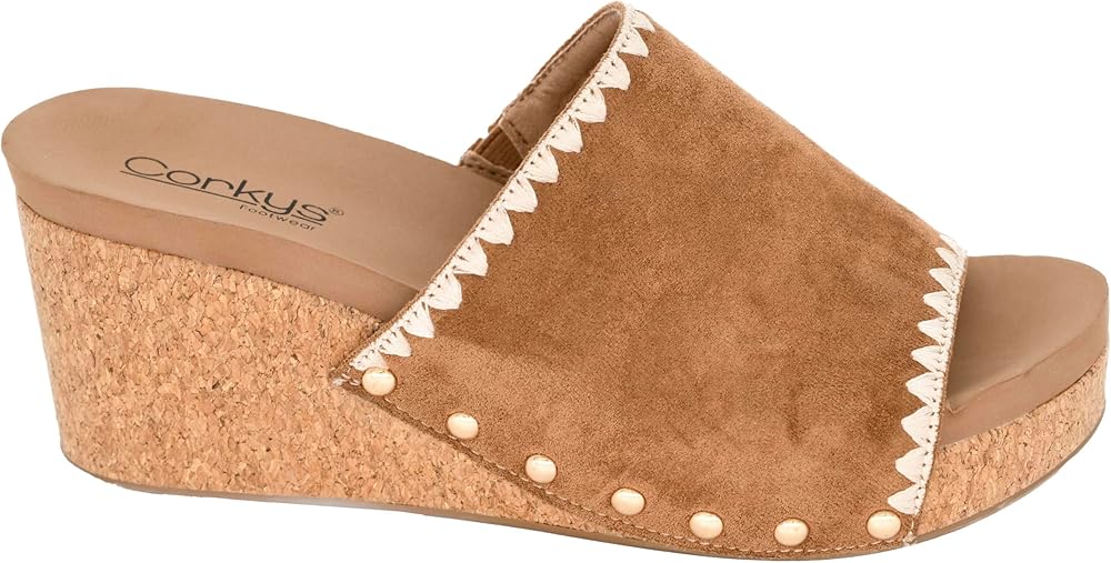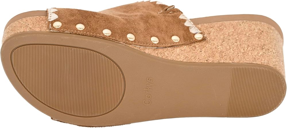 *Platform sandal from Corkys *Synthetic upper with accent stitching and studs *Slip-on fit *Lightly cushioned footbed *3" wedge heel