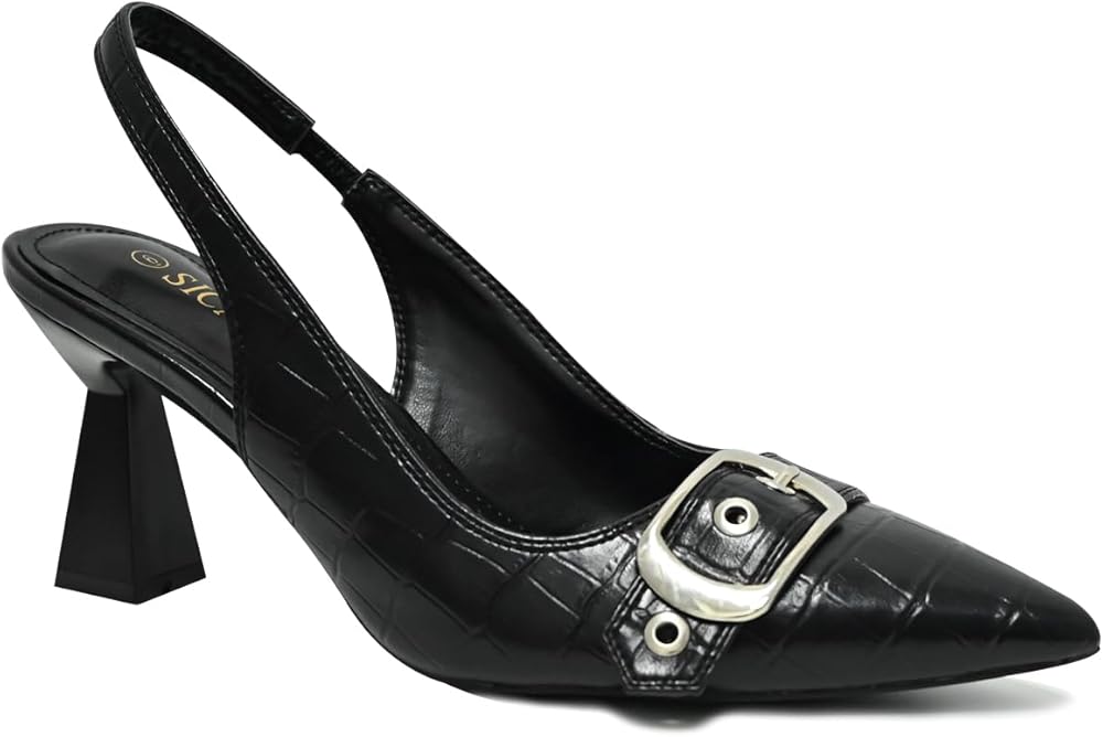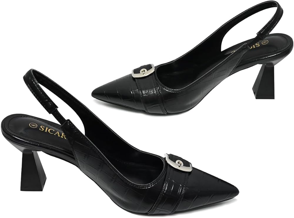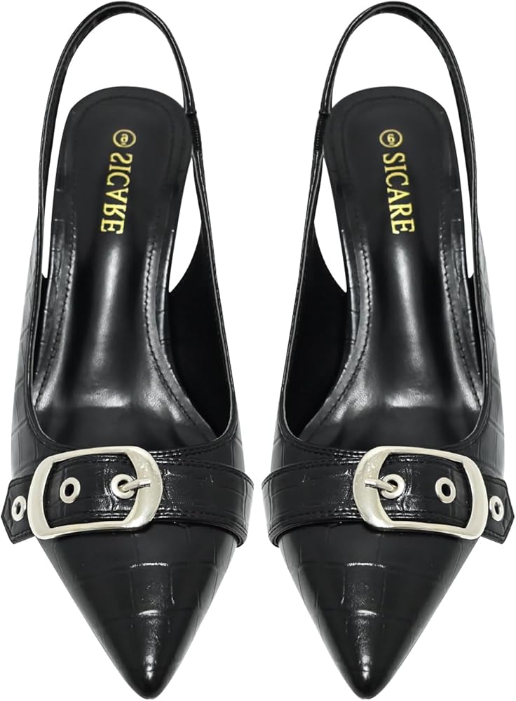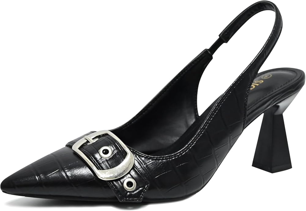 Sleek Closed Pointed Toe Slingback Heels: Our slingback pumps heels feature a closed pointed toe silhouette, exuding sophistication and charm, while the buckle strap adds a dash of coolness and allure.
