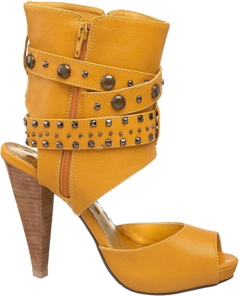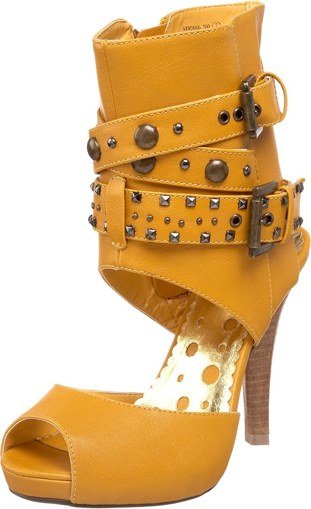It's a sandal! It's a boot! Get the best of both worlds in this unique shoe. The upper features a peep-toe and a cool zippered shaft that is encircled with studded and buckled straps. Add to that a platform and sky-high heel and you've got a shoe sure to stop everyone in their tracks.