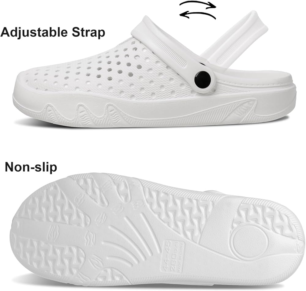 Lightweight Comfy Slip on Graden Clogs : non skid foam soles , well constructed roomy fit , portable for traveling , shock absorption and thermal insulation