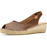 Get ready to set the trend this season by opting for the Toni Pons Bernia-P Heels which feature a striking mix of classic and contemporary elements. Solid-colored leather upper. Leather lining. Padded cotton insole. Slip-on design with a stretchy slingback ankle strap. Peep toe silhouette. Jute and rubber wedge heel. Rubber outsole for traction and durability. Made in Spain.