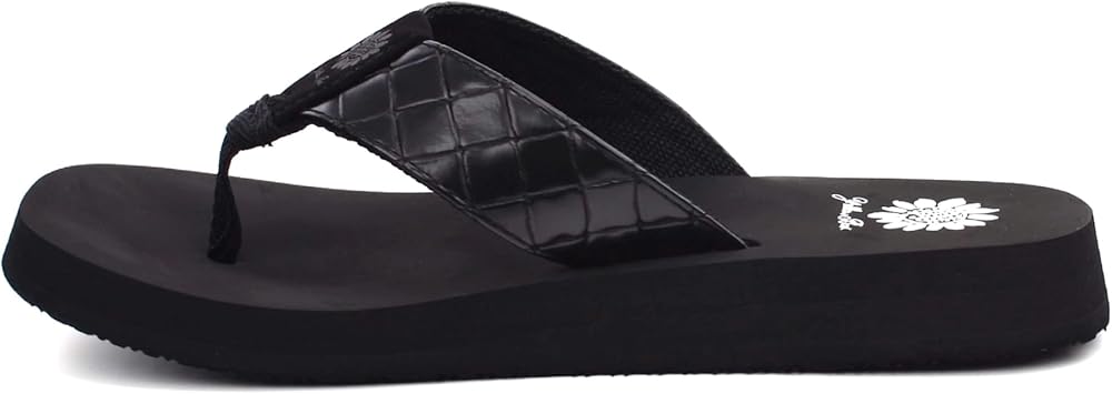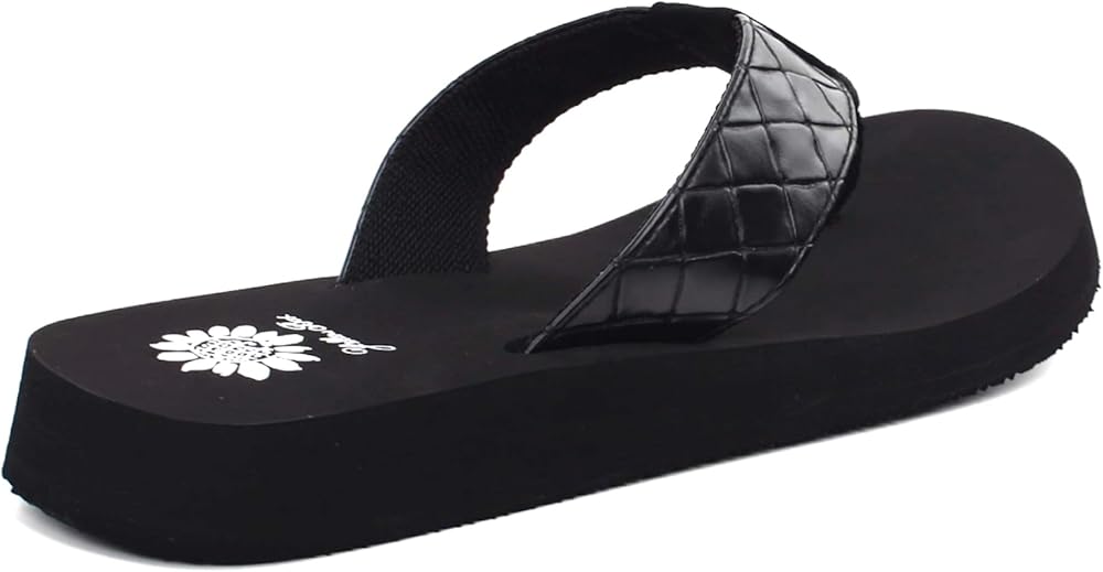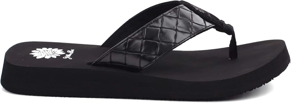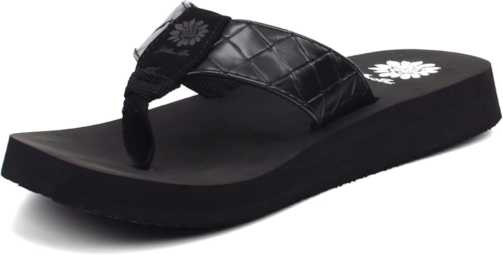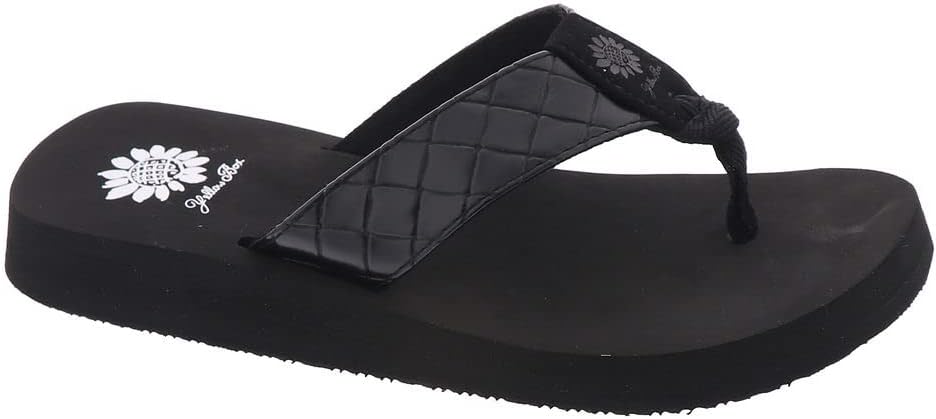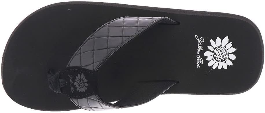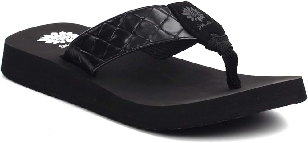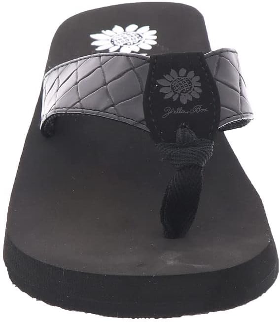 Set on a sculptural heel and adorned with eye-catching studs on the upper, the Yellow Box Flophop Heels are enough to spruce up your style game. Faux leather upper. Textile lining. Signature EVA footbed offers cushioning comfort. Slip-on construction for easy on and off. Open round toe. Rubber sponge outsole.