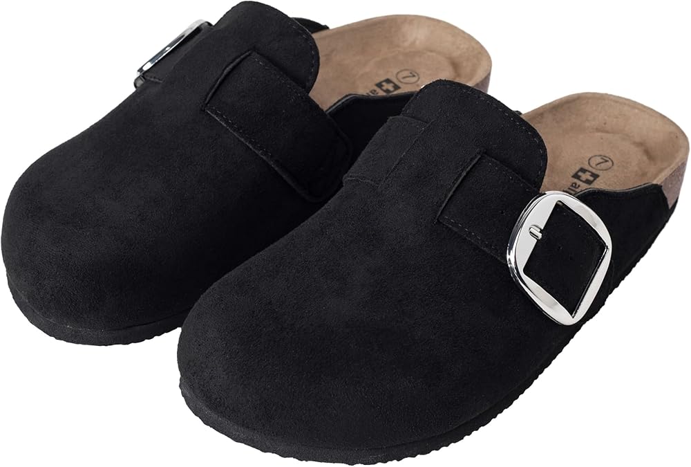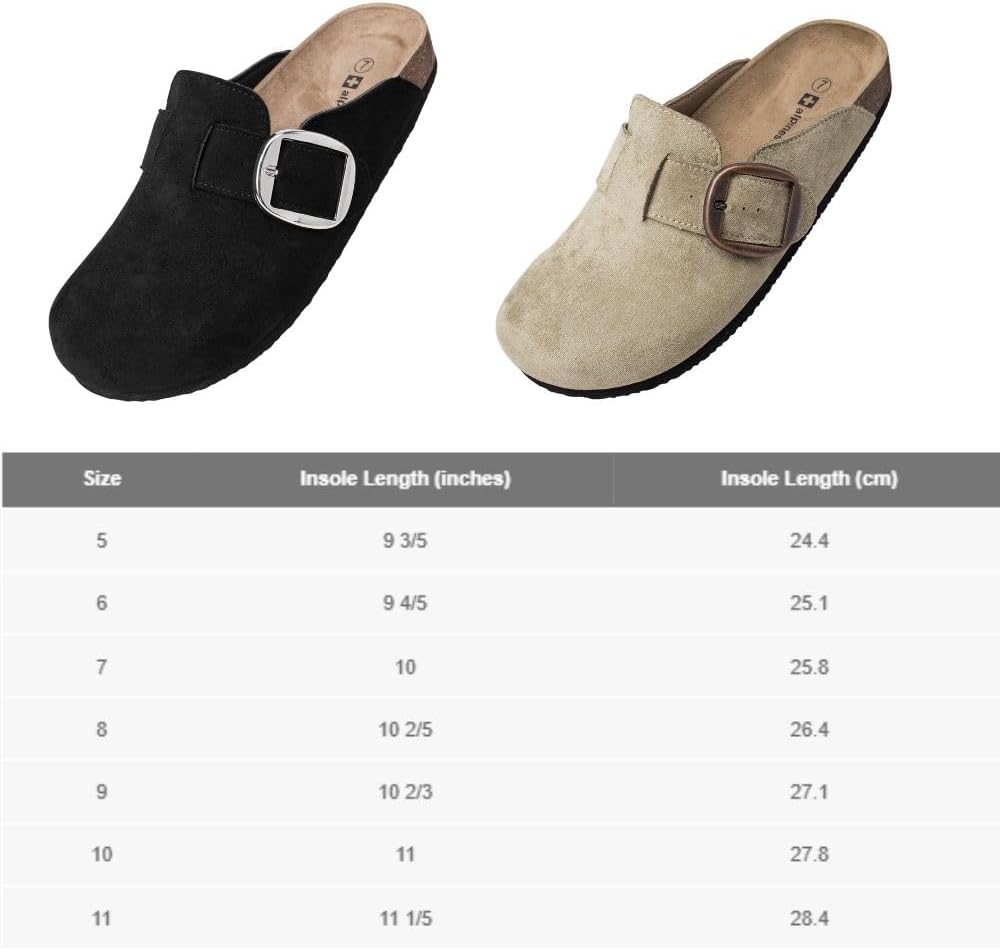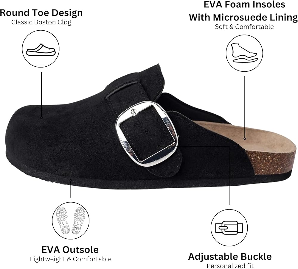 CLASSIC – The classic boston clog design with an accent buckle is simple and trendy. The round toe design creates a spacious toe box.