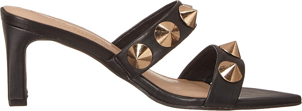 Pointed toe and pointed studs make up the YARLEY. This razor backed heel, slip on sandal has just the right amount of edgy detail to spice up any look.