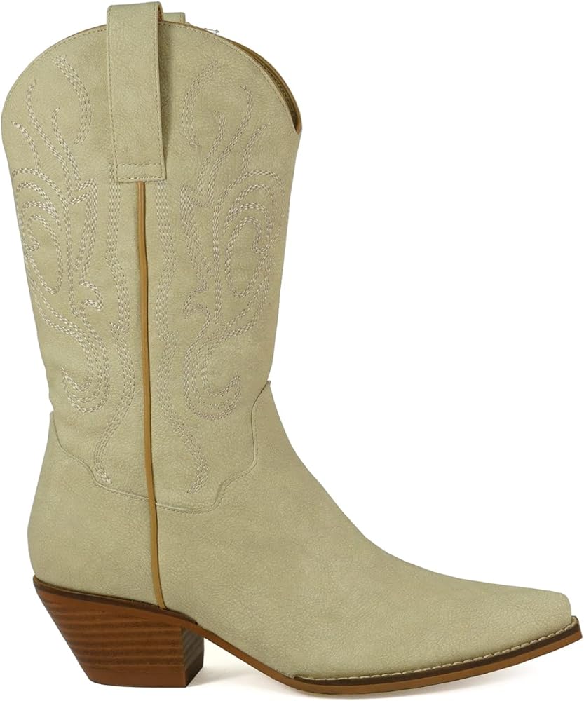 ARiderGirl Spindelle Women's Western Style Mid Calf Embroidery Studs Stacked Heel Pull-On Boots