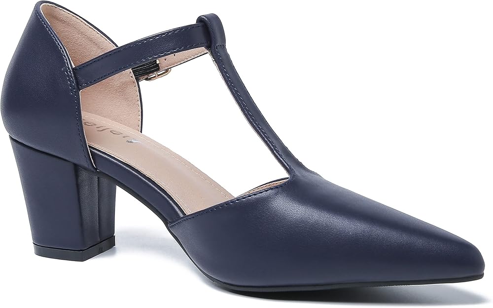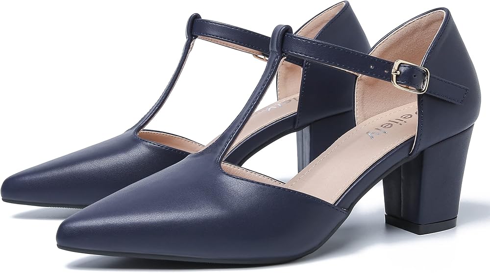 These high grade pumps Features: pointed toe, block low heel, t-straps, D'orsay, adjustable ankle buckle closure dance pumps for women.