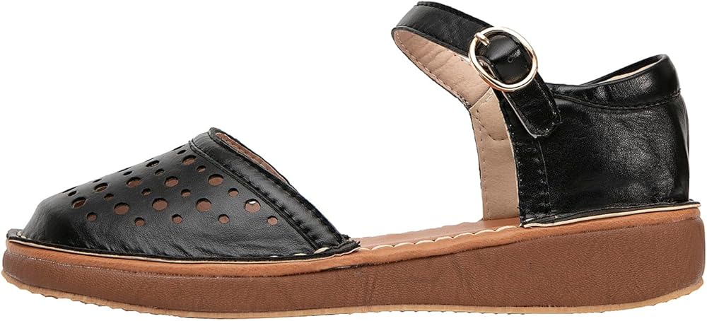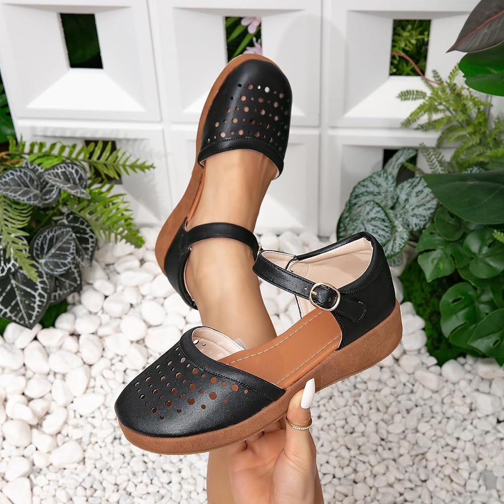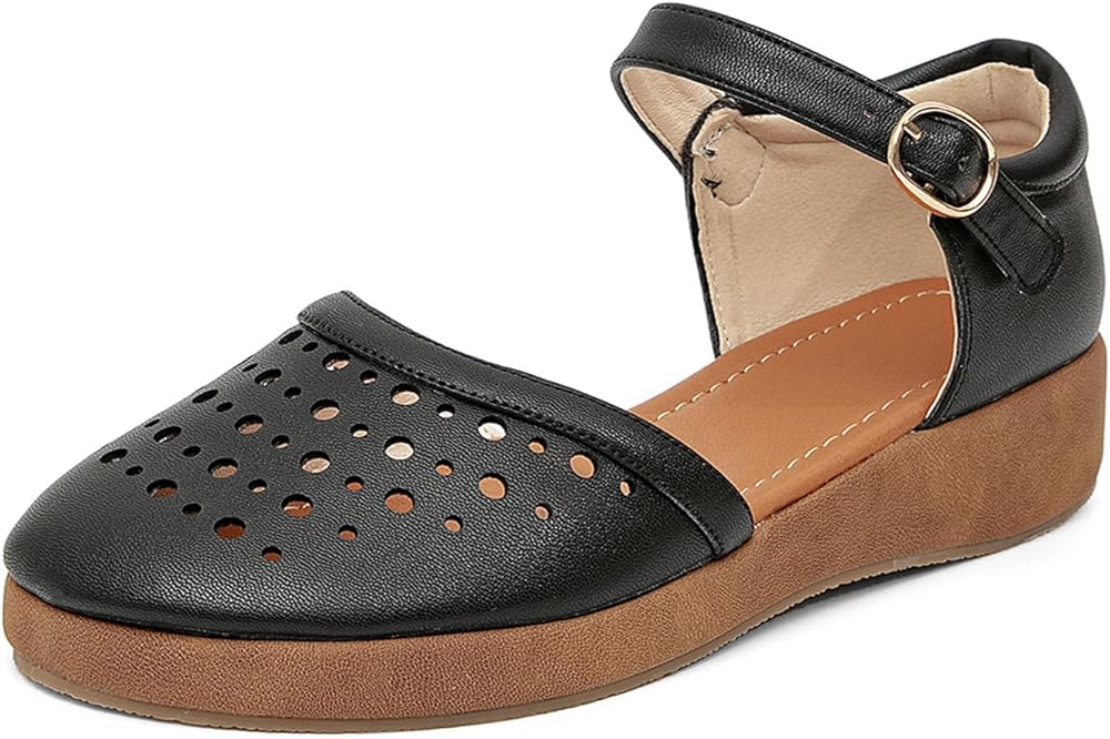 【Unique Design】Roman cage design that adds sparkle to your chic look, enjoy compliments from others. Classic round toe, ankle strap with buckle style, super comfy and cute wedge flats shoes are easy put on and off, brings a sure-footing.