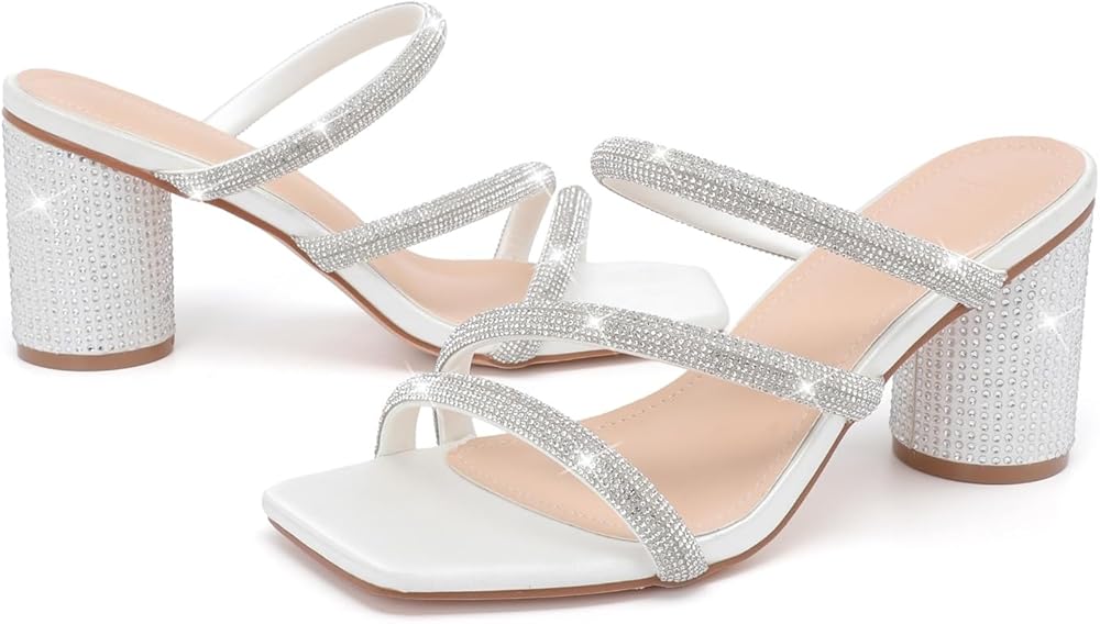 【Sparkle Bling Elegant Dressy Sandals】Women block glitter heeled sandals heel height measures approximately 3.17 inches.effortlessly give you the perfect boost in height and elongate the sexy legs,the sparkle rhinestone desgin Instantly elevate any look ,definitely adding polish and unique to your chic and sophistic look
