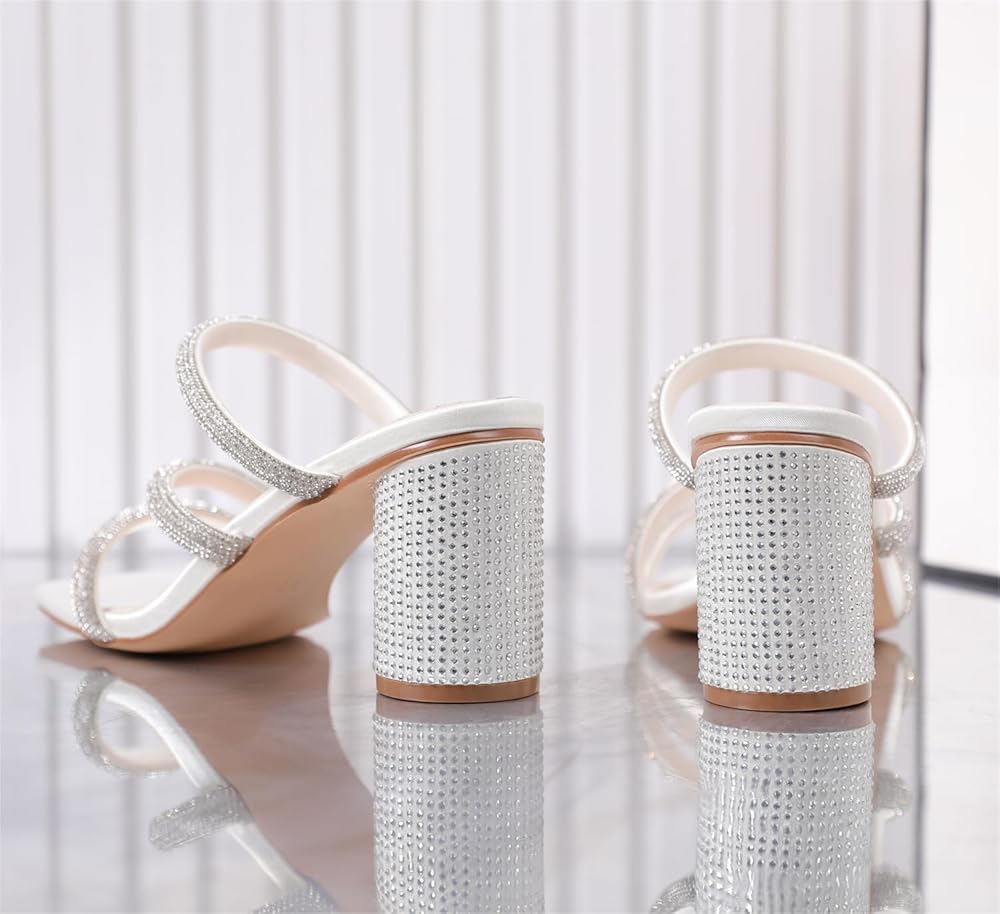 【2024 Fashion Rhinestone Heeled Sandals】If you're looking for a unique women heeled sandal, these sparkle high block heels from kkdom can meet all your fashion needs,glitter bling straps, and thick block heels desgin, these heeled sandals will add a sophisticated flair to your everyday wardrobe