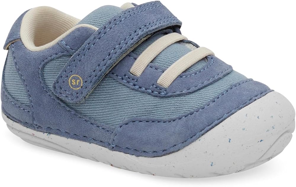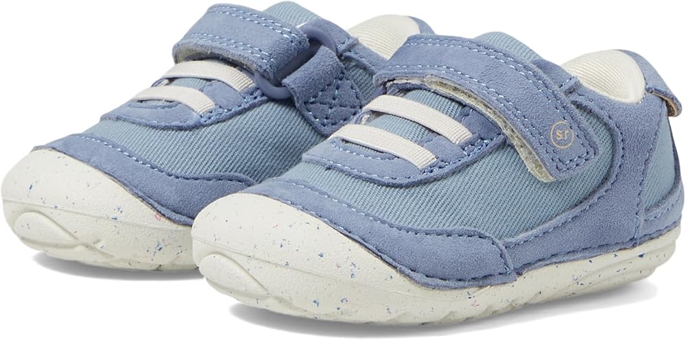 The Stride Rite SM Sprout is an exceptional shoe that supports your child's every step. With APMA approval, it ensures optimal foot health and development. The Ortholite® Memory Foam provides superior cushioning and support for growing feet. Featuring an easy hook and loop closure with elastic laces, these shoes offer a secure and adjustable fit. The twill upper is crafted from a blend of 30% seaweed fiber and 70% organic cotton, along with chrome-free suede, making them eco-friendly and sustainable. The 100% recycled linings add to their environmentally conscious design. The flexible rounded soles encourage natural movement and balance, while a special treatment helps reduce odors, ensuring fresh and comfortable feet all day long.