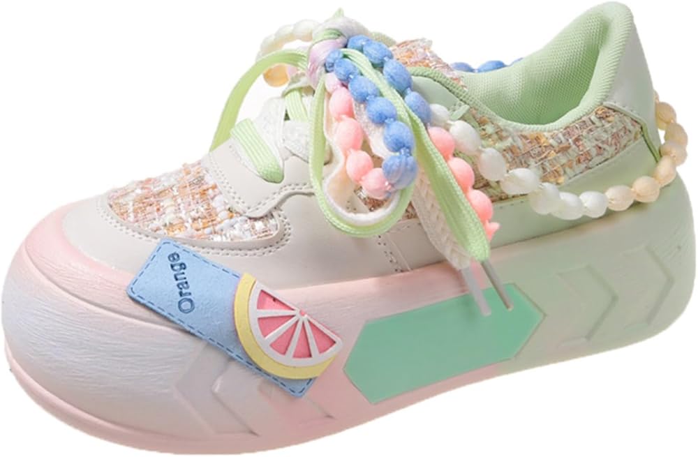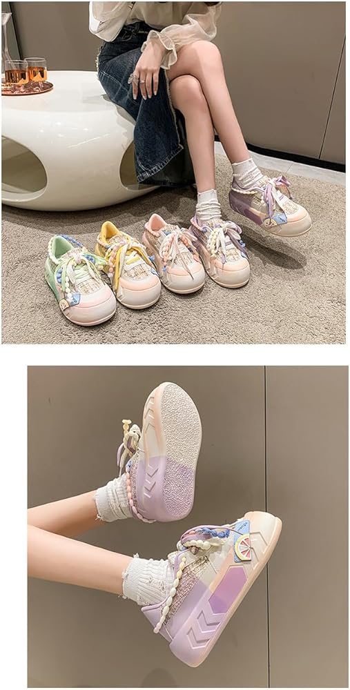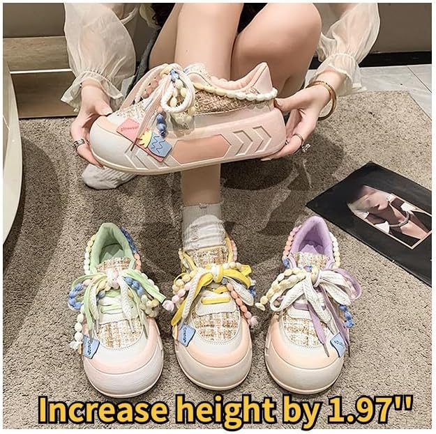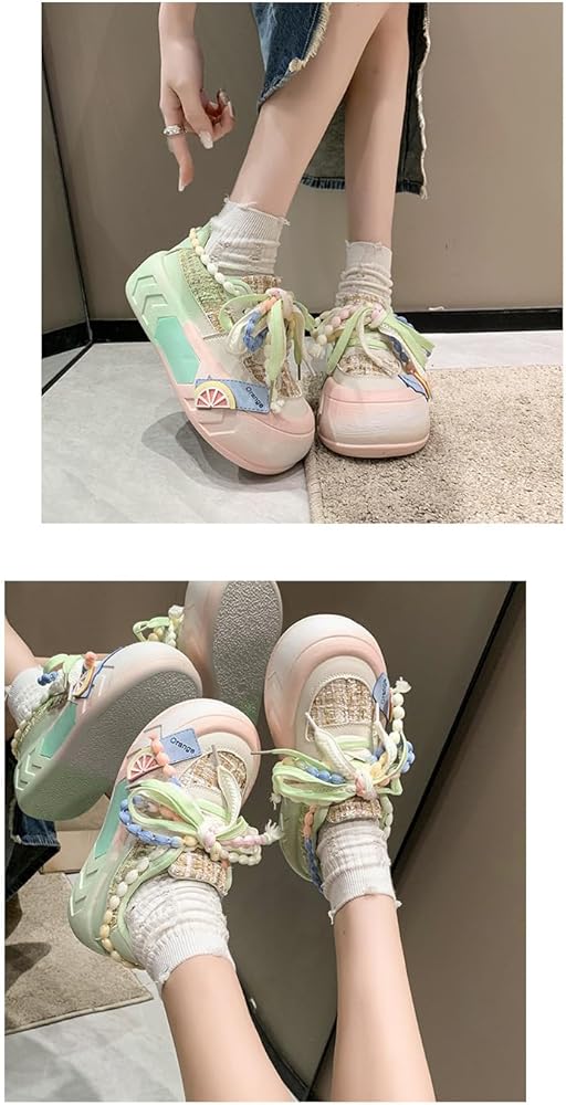 Kawaii Women's Y2K Platform Chunky Sneakers - Cute Linen Thick Roundhead Rave Travel Shoes