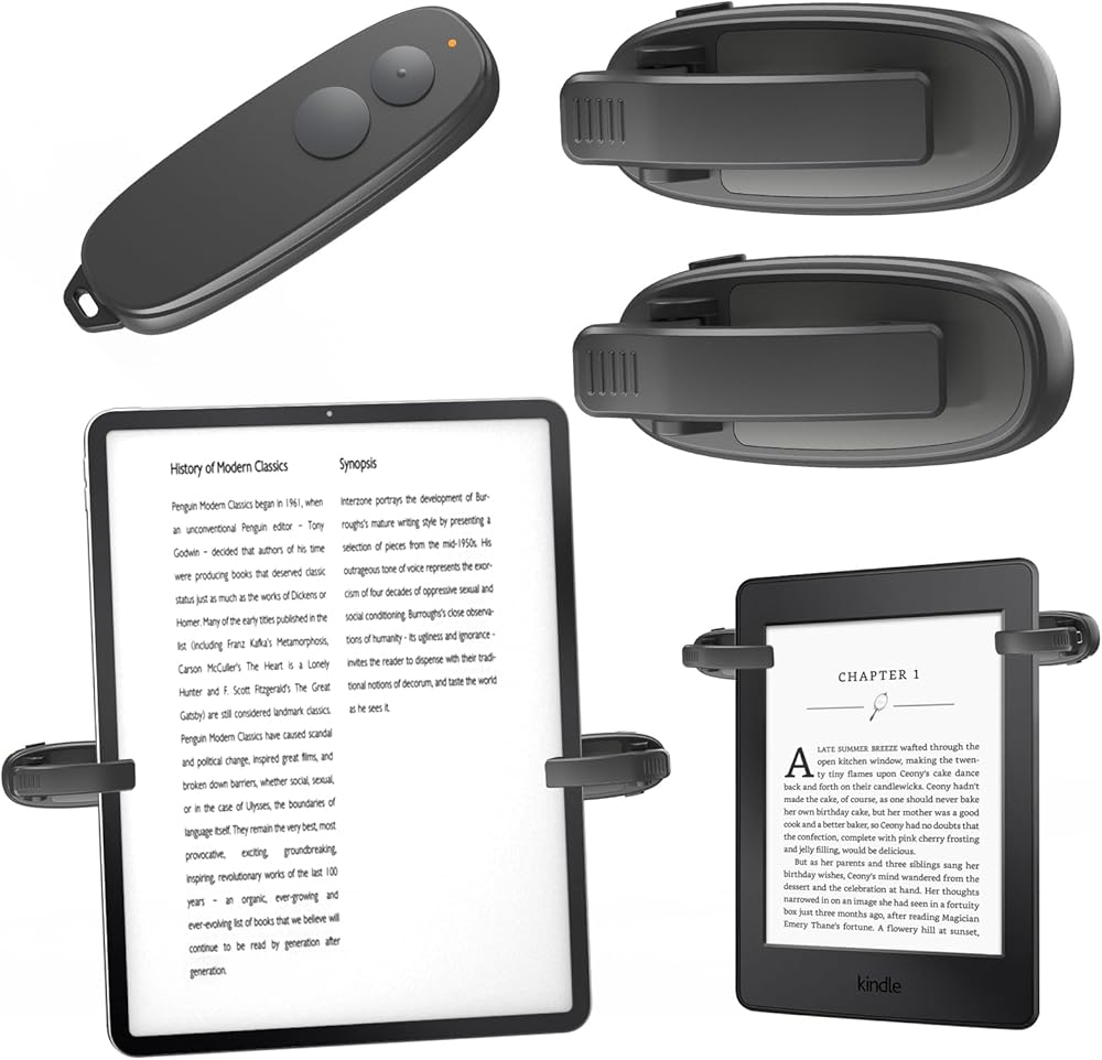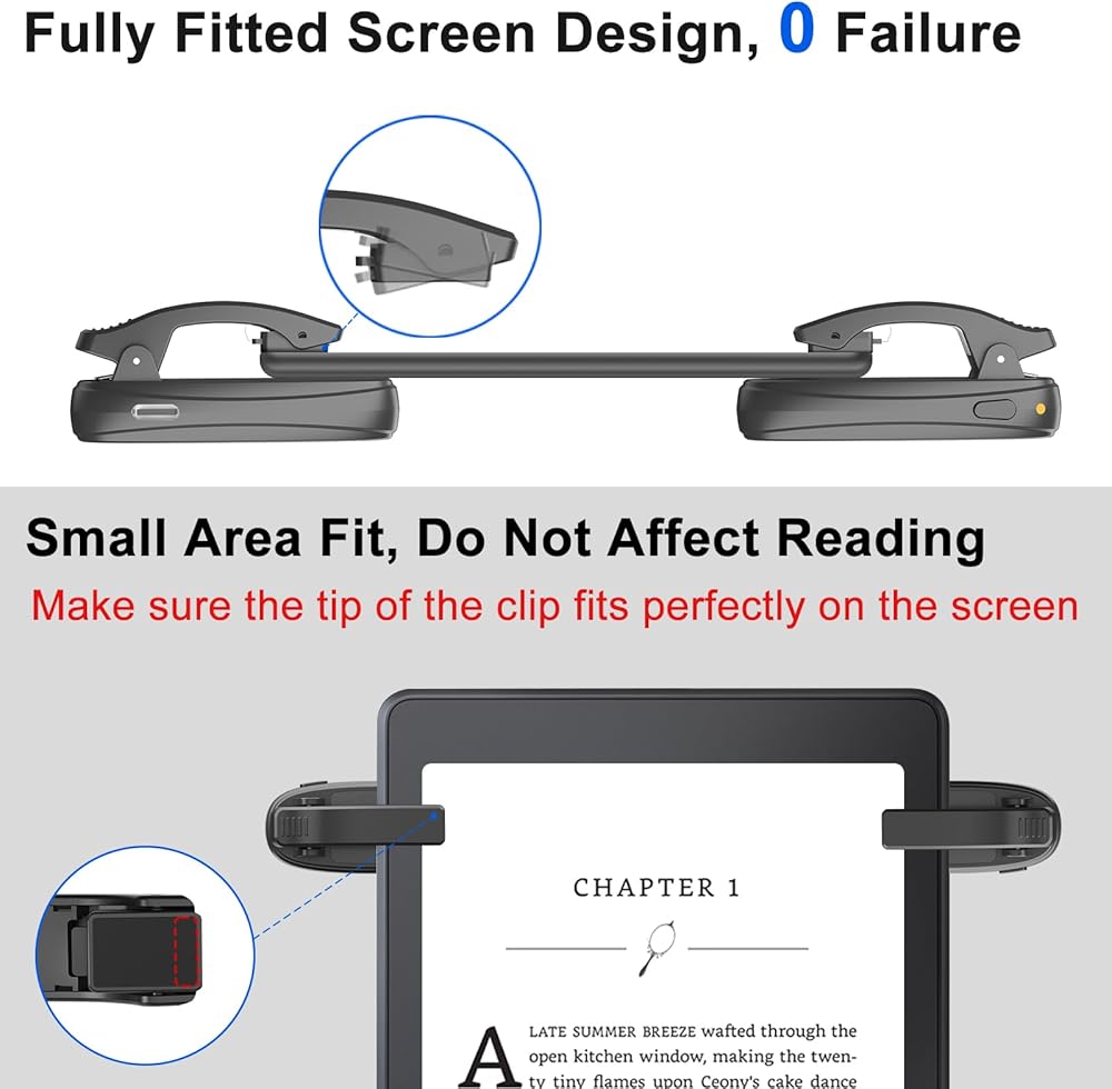 [لا يؤثر على القراءة] طرف المشبك البعيد لأداة تشغيل الصفحات كيندل صغير جدًا، ولا يحجب الخط، ولا يؤثر على القراءة (قد تحتاج بعض أجهزة القراءة وبرامج القراءة إلى ضبط الهوامش لمنع حجب الخط ) [نموذج البنصر]