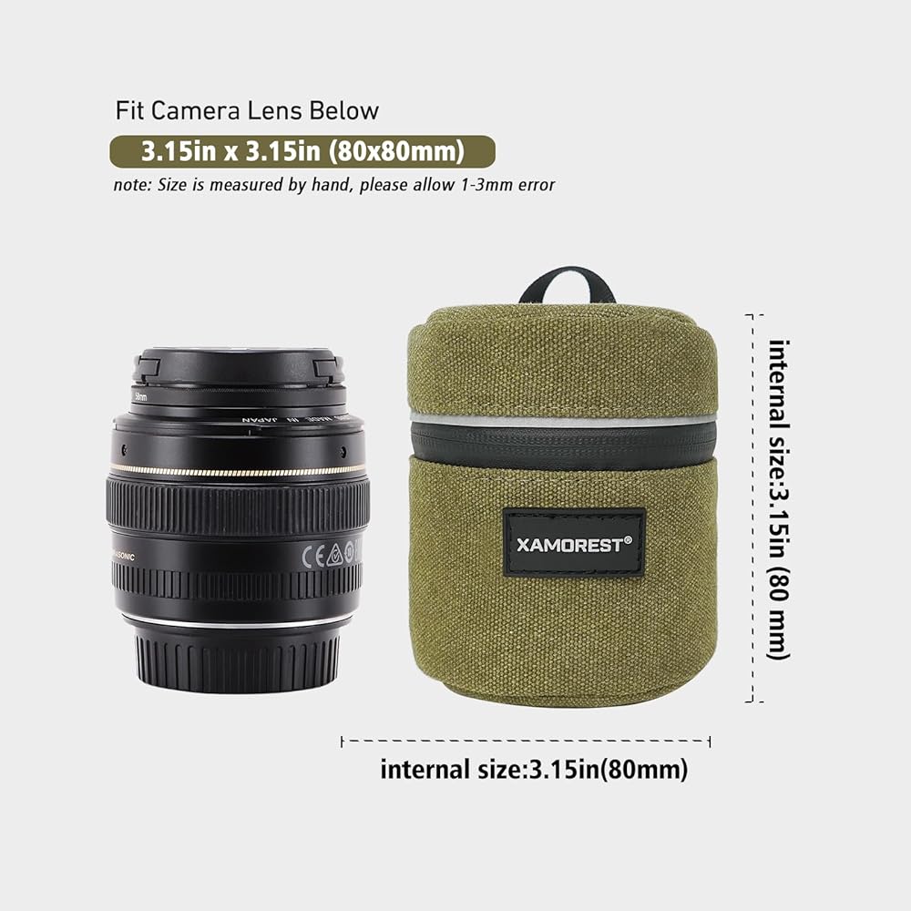 【Compatible with】The internal size of this camera bag is 3.15" x 3.15", which is very suitable for Canon EF 28mm f1.8/EF 24mm f 2.8/EF 50mm F 1.8Ⅱ, Nikon 35mm f1.8G/50mm f 1.8D/50mm f1.8 G/50mm f 1.4and other camera lenses smaller than 3.15" x 3.15".
