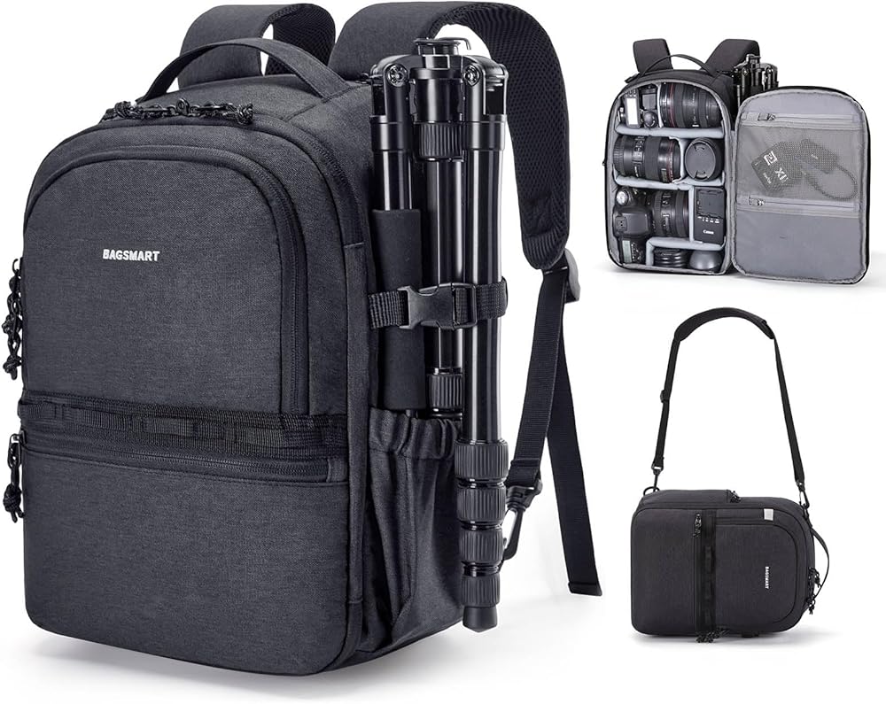 BAGSMART Camera Backpack, DSLR SLR Small Camera Bags for Photographers Compatible for Sony Canon Nikon, Shoulder Strap 2-in-1 Anti-theft Travel Backpack Fits 12.9" iPad, Black