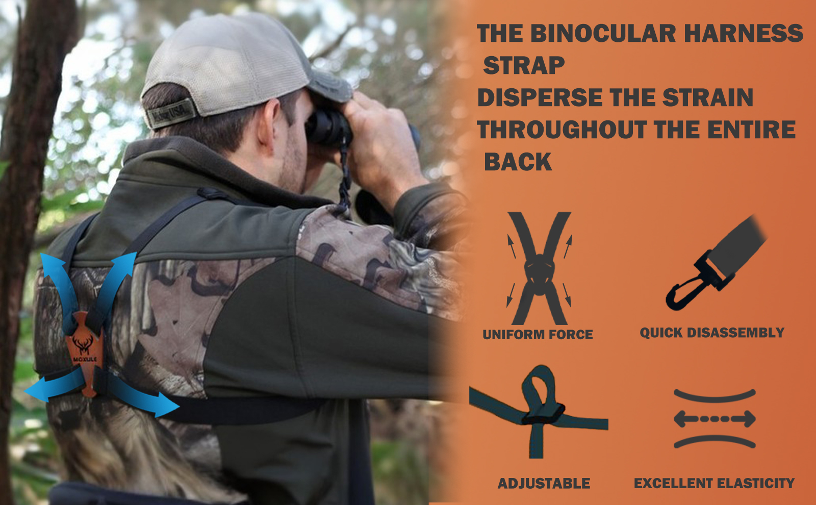 Suitable for Most Binoculars: The MOXULE binocular harness strap adapts to most binoculars and cameras on the market, allowing for convenient installation and disassembly during outdoor activities. It is highly suitable for activities such as hunting, birdwatching, and hiking.
