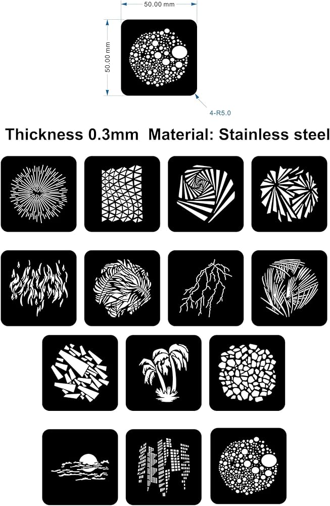 14 Pcs GOBO Kit, Metal Plate Works with FS-100SLENS 100SLENS-SE Optical Snoot to Create Different Lighting Effects Projection Photography Spotlight Attachment