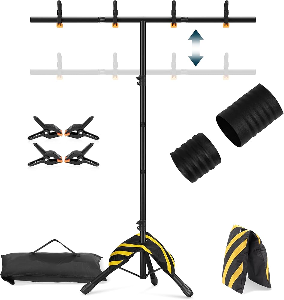 T-Shape Portable Backdrop Stand 6.5x3.2FT, Adjustable Photo Background Stand Kit, Small Backdrop Stand with 4 Spring Clamps, Sandbag, Carry Bag for Parties, Wedding, Photography, Decoration