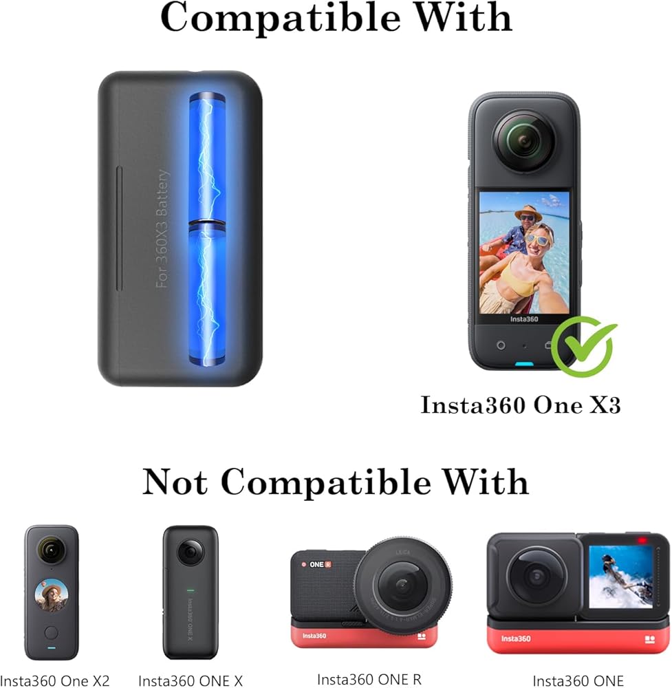 【Storage & Portable Charging Box】It is not only a battery charger for Insta 360 X3 battery, but also a storage box for battery and Micrso SD card. Designed with the compact magnetic cover, Portable and easy to travel.