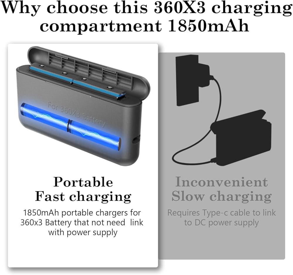 【7000mAh Battery Charger Hub for Insta360 X3】Upgraded Waterproof 2 Packs 360 X3 Batteries, Battery Power Station for Insta360 X3 action camera. Cell Capacity: 7000mAh, Fireproof material, safer battery charging.