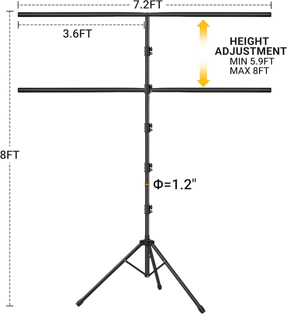 📸【Adjustable T-Backdrop Stand】Coliflor green screen stand is made of high-strength aluminum alloy for durability and long life. The height of the back drop stand can be adjusted from 2 feet to 6 feet, Suitable for most usage scenarios