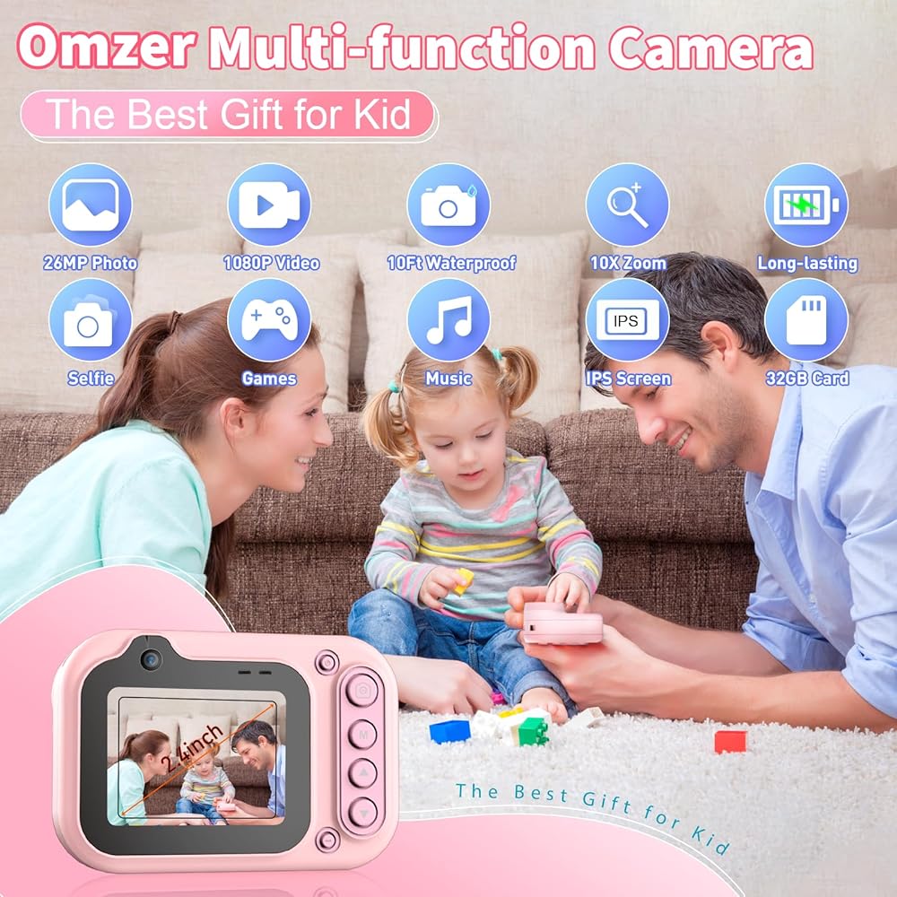 【Professional Waterproof Camera】Compared with other kids cameras, Omzer Kids Waterproof Camera does not require any protective case and is waterproof up to 10 Ft (5m), which makes it excellent for use in the water and outdoors. Allows kids to use the camera to take amazing photos while swimming, surfing, diving, skiing, biking, skateboarding and other activities! (Tip: You need to make sure the waterproof cover is closed when using it in the water!)