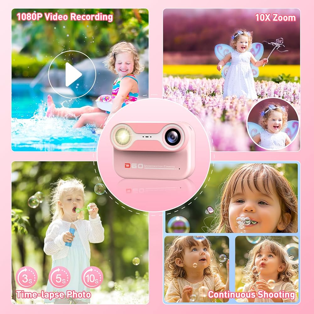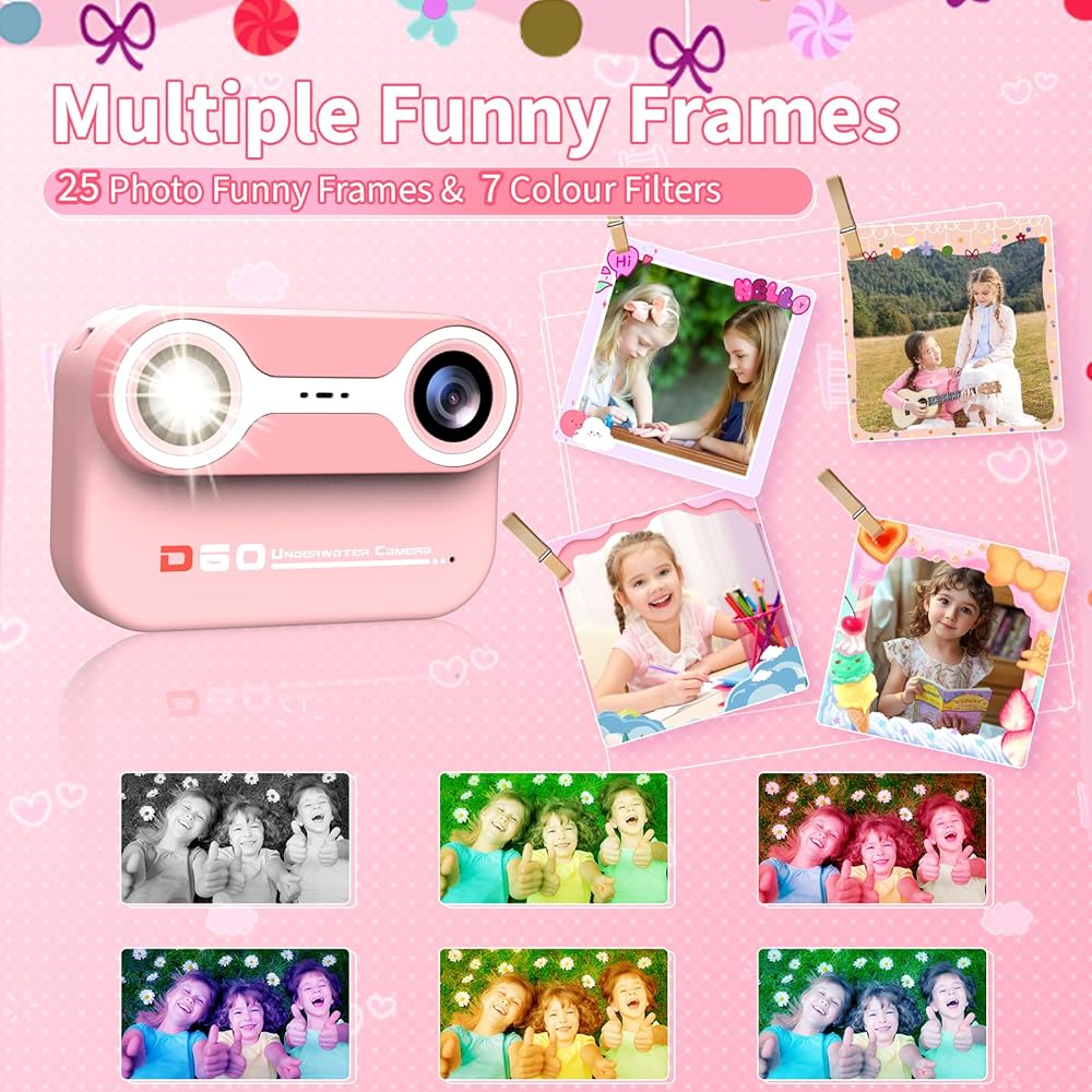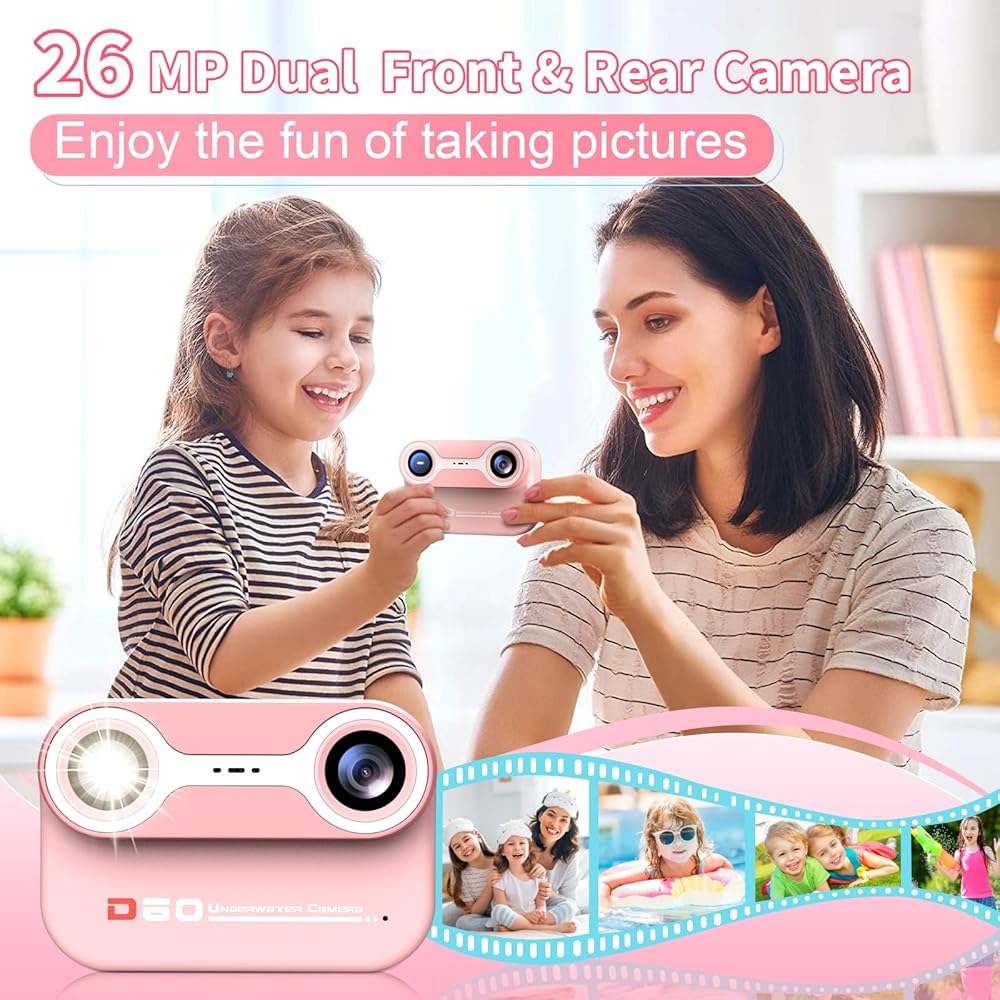 【Best Gift Camera for Kids】Our camera is an ideal underwater camera for children and is the perfect gift toy camera for children's Day gifts, Christmas gifts, birthday gifts and holiday gifts for children aged 3-12 years. It is a great companion to children's daily life or holiday trips, allowing children to easily take photos and videos and experience the fun of photography!