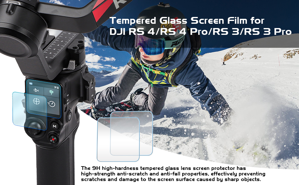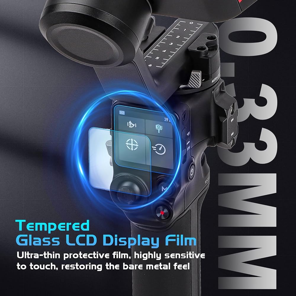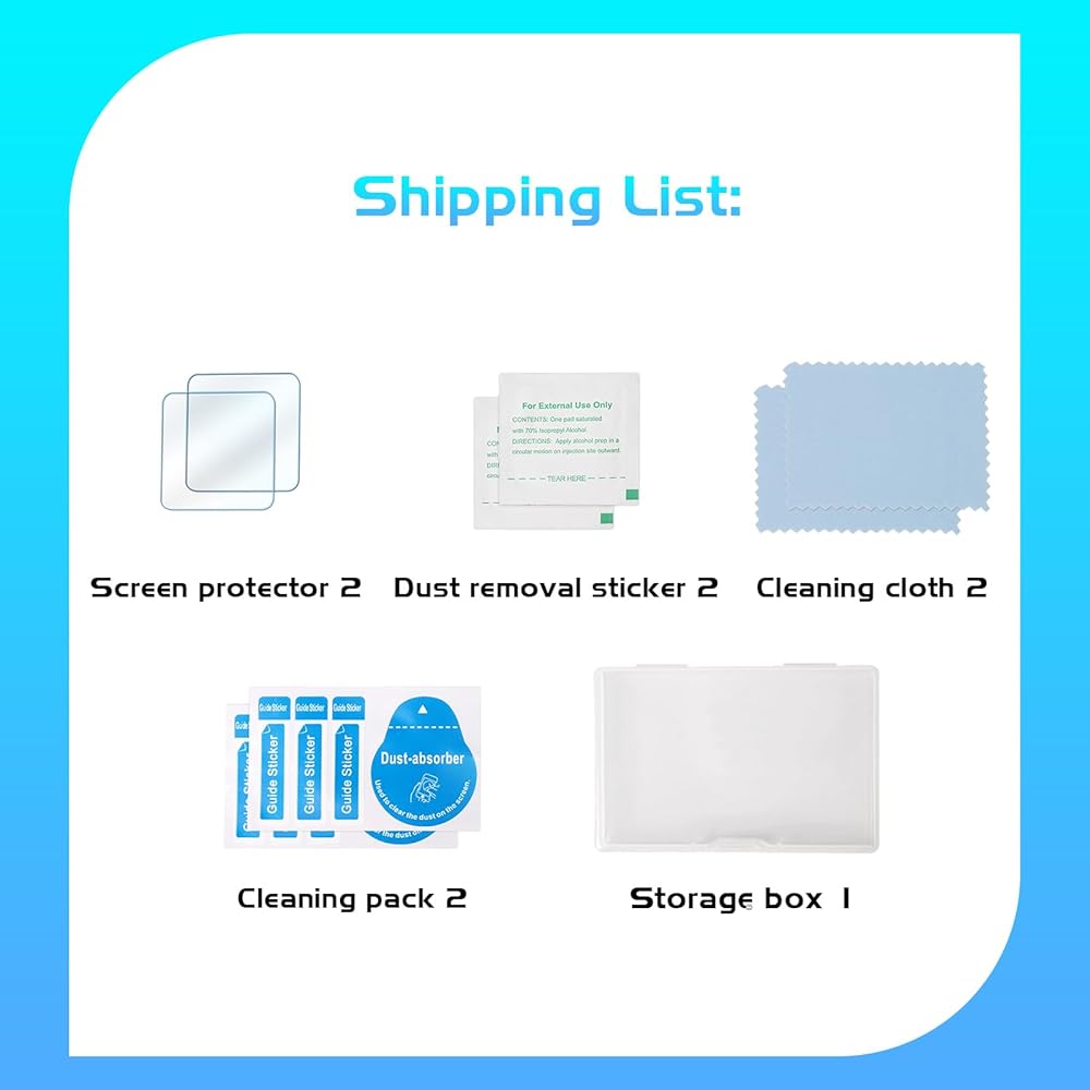 Exclusive Design: The screen protector set is specially designed for DJI RS 4/RS 4 Pro/RS 3/RS 3 Pro. Delivery list: Screen protector*2, cleaning bag*2; dust removal sticker*2; cleaning cloth*2; storage box*1.