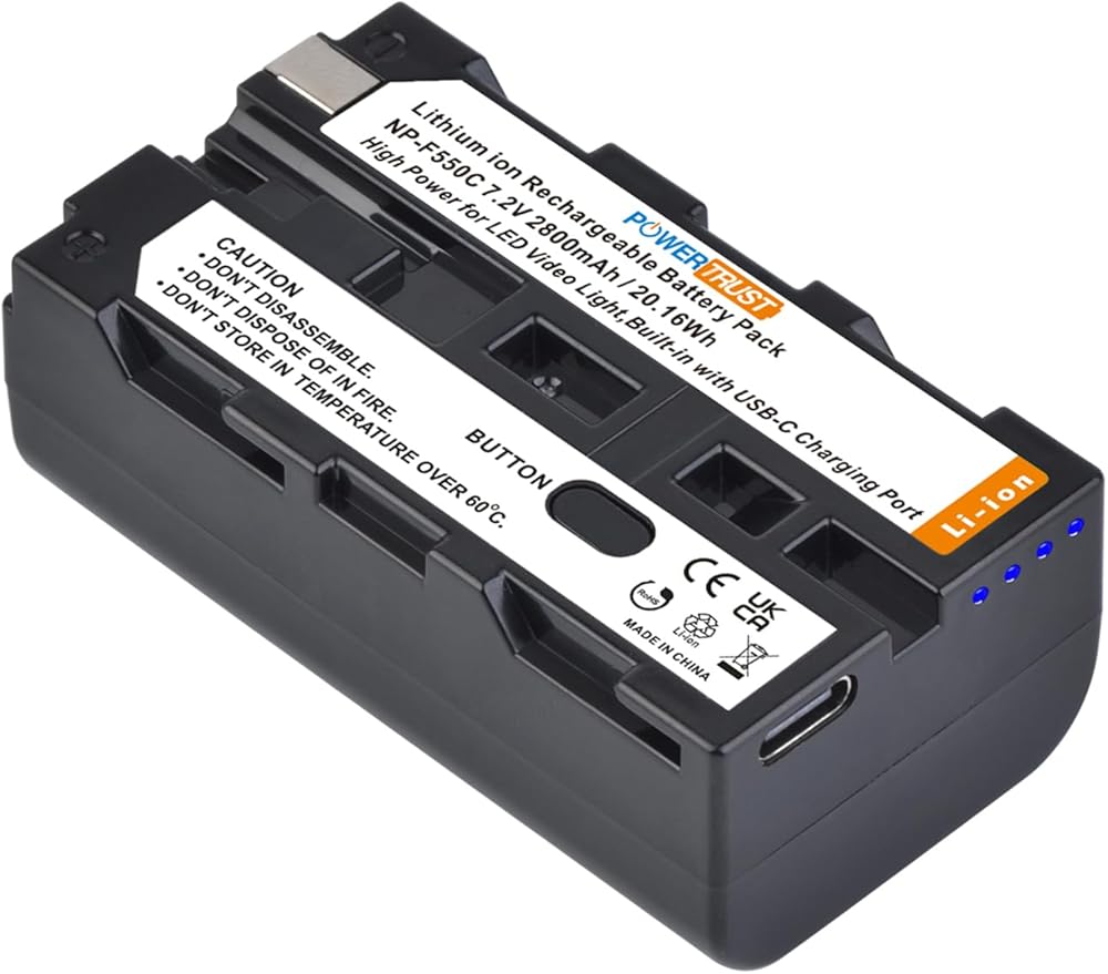 Battery Capacity:2800mAh, Battery Voltage:7.2V, Battery Type: Lithium Ion., Use: LED VIDEO LIGHT, Battery with Type-C Charging ports, Power Button,4 LED indicator Light .