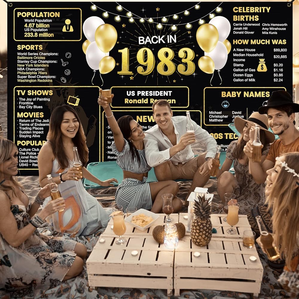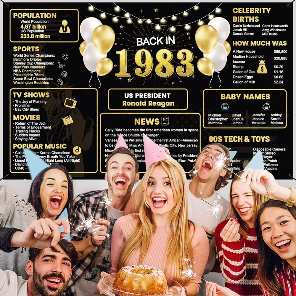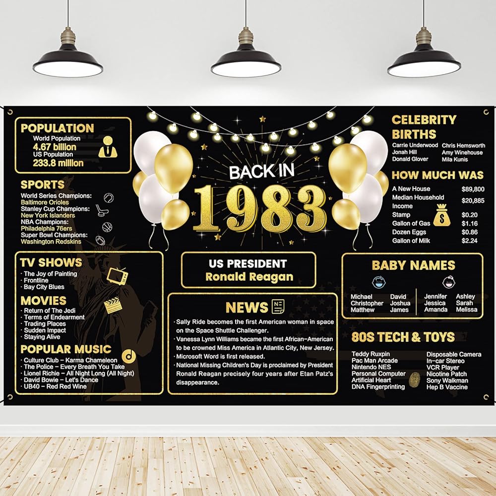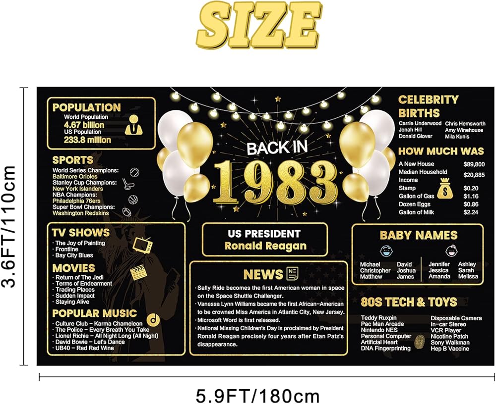 1983 41st Birthday Decorations For Men Women, Black Gold Vintage Back in 1983 41st Birthday Backdrop Banner, 41 Years Old Birthday Poster Photo Background, 41st Anniversary Party Supplies