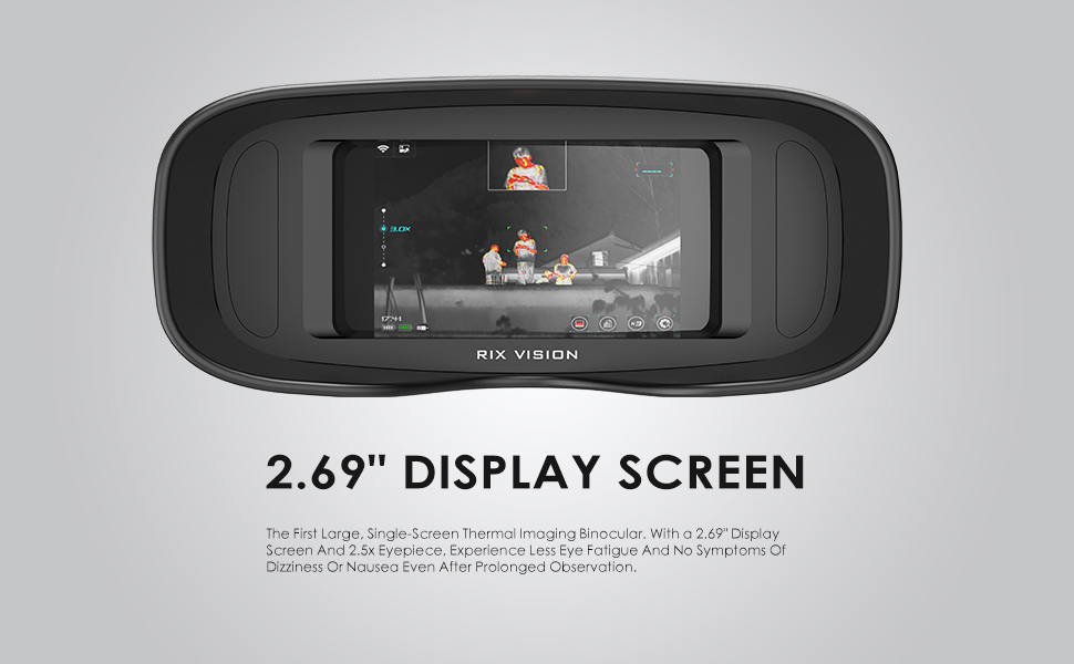 OLED display screen of 2.69 inch size in combination with 2.5x eyepieces for binocular observation, avoiding dizziness caused by long-term use of the existing dual-screen products in the market, thus greatly improving observation comfort.