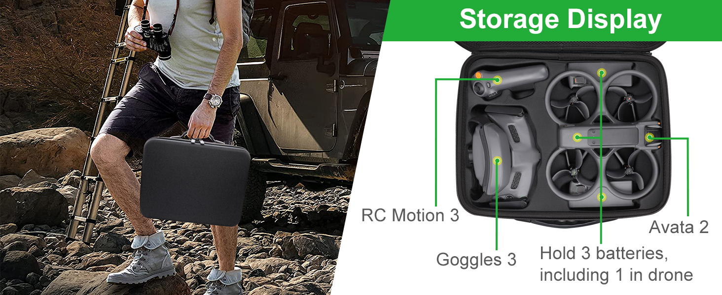 IDEAL CHOICE: Ideal for professional photographers, videographers, or hobbyists, the Avata 2 Carrying Case provides a reliable and portable solution to keep your DJI Avata 2 and its essential accessories safe and secure during travel or storage.