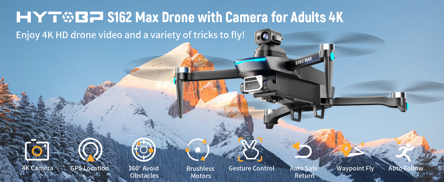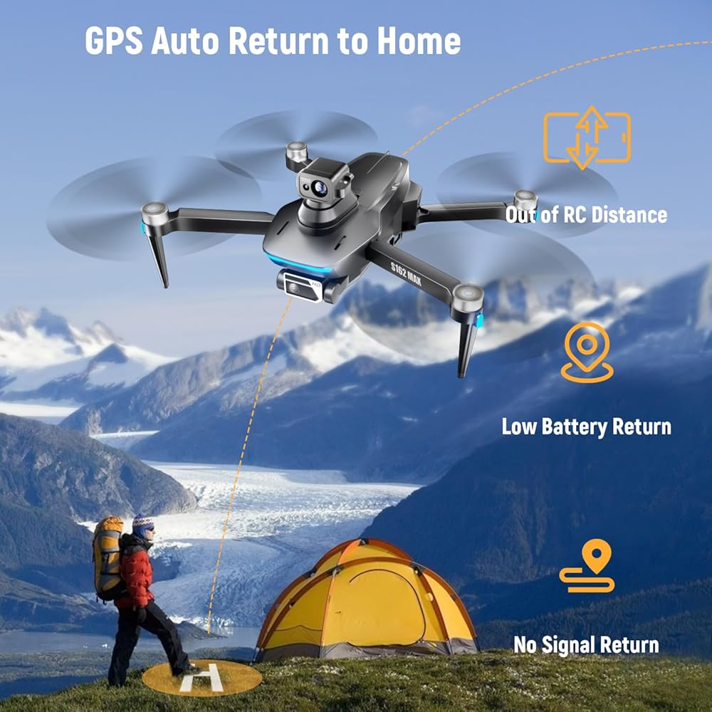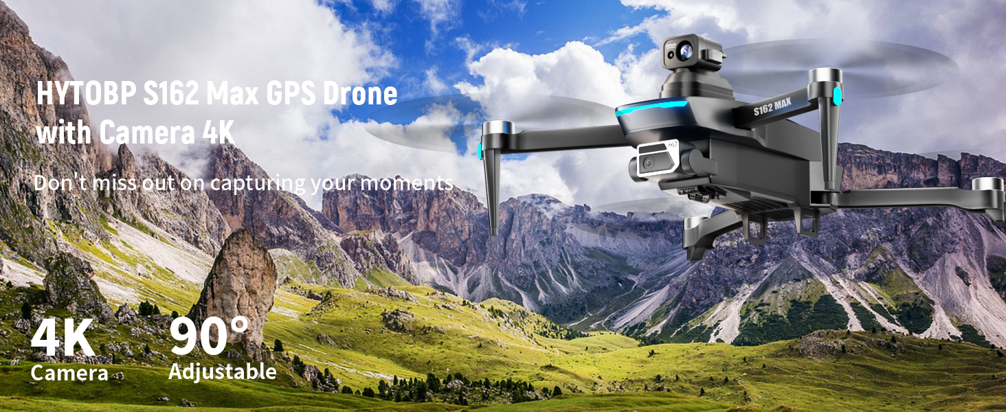 【4K Drone】S162 Max drone with camera 4k to capture HD images, ensuring clear and blur-free video. The electrically adjustable 120° lens allows you to freely switch for multi-angle shots.