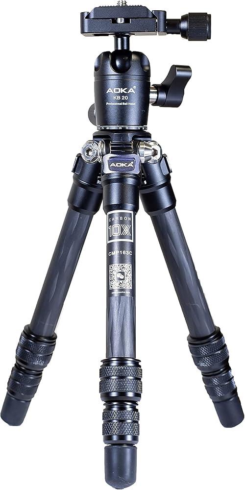 A true piece of jewellery. The super beautiful, stable and especially ultra-light table tripod with a total weight of just over 500 grams. With sturdy twist locks on the carbon legs and a screw-on telescopic centre column if the height without the centre column is not quite enough. With beautiful compact ball head KB20 including quick coupling. The very slim quick release plate is ideal for mirrorless cameras and of course compatible with the ARCA-SWISS system. Comes with additional smartphone clamp holder. Height, min. (with ball head): 37 (105) mm height, max. (with ball head): 332 (400) mm height max. With centre column without ball head: 640 (710) mm weight (with ball head): 351 (505) g load capacity: 3 kg pack size: 240 mm leg segments: 3 leg diameter: 16/13/10 mm.