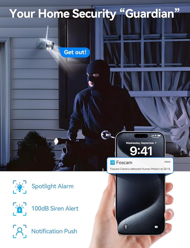 US Local Security Storage Station: FOSCAM outdoor security camera utilizes the latest AES256 AI algorithms and cloud services powered by Amazon AWS to provide industry-leading dual privacy protection and data security. Easily store video recordings with support for up to 256GB of SD card storage and NVR support for onvif protocol.
