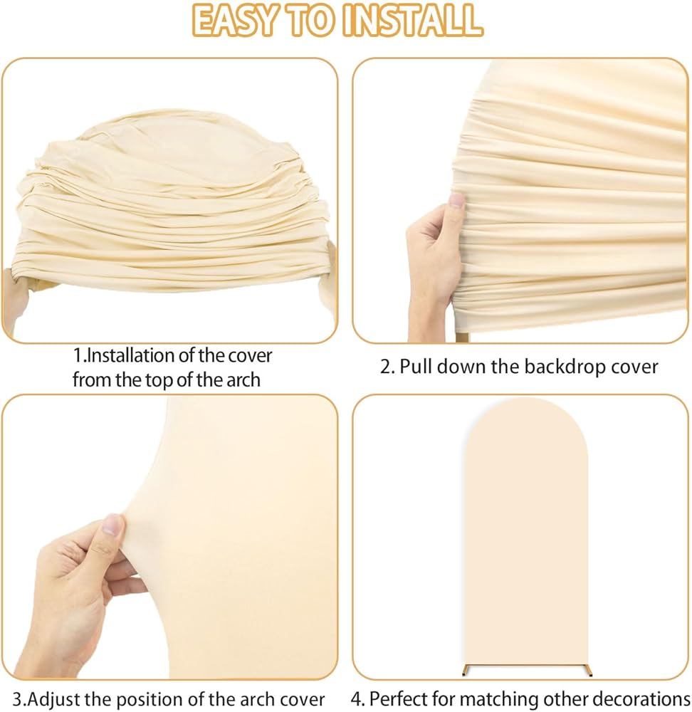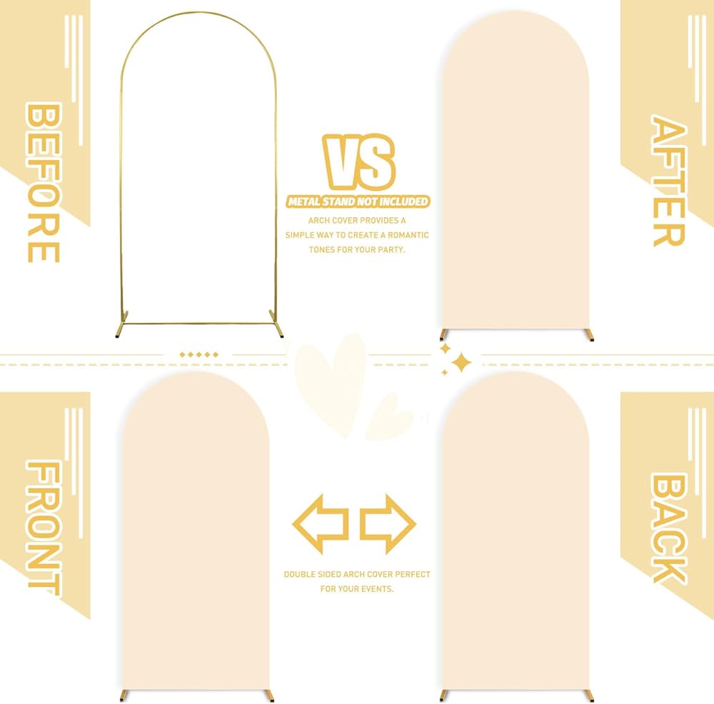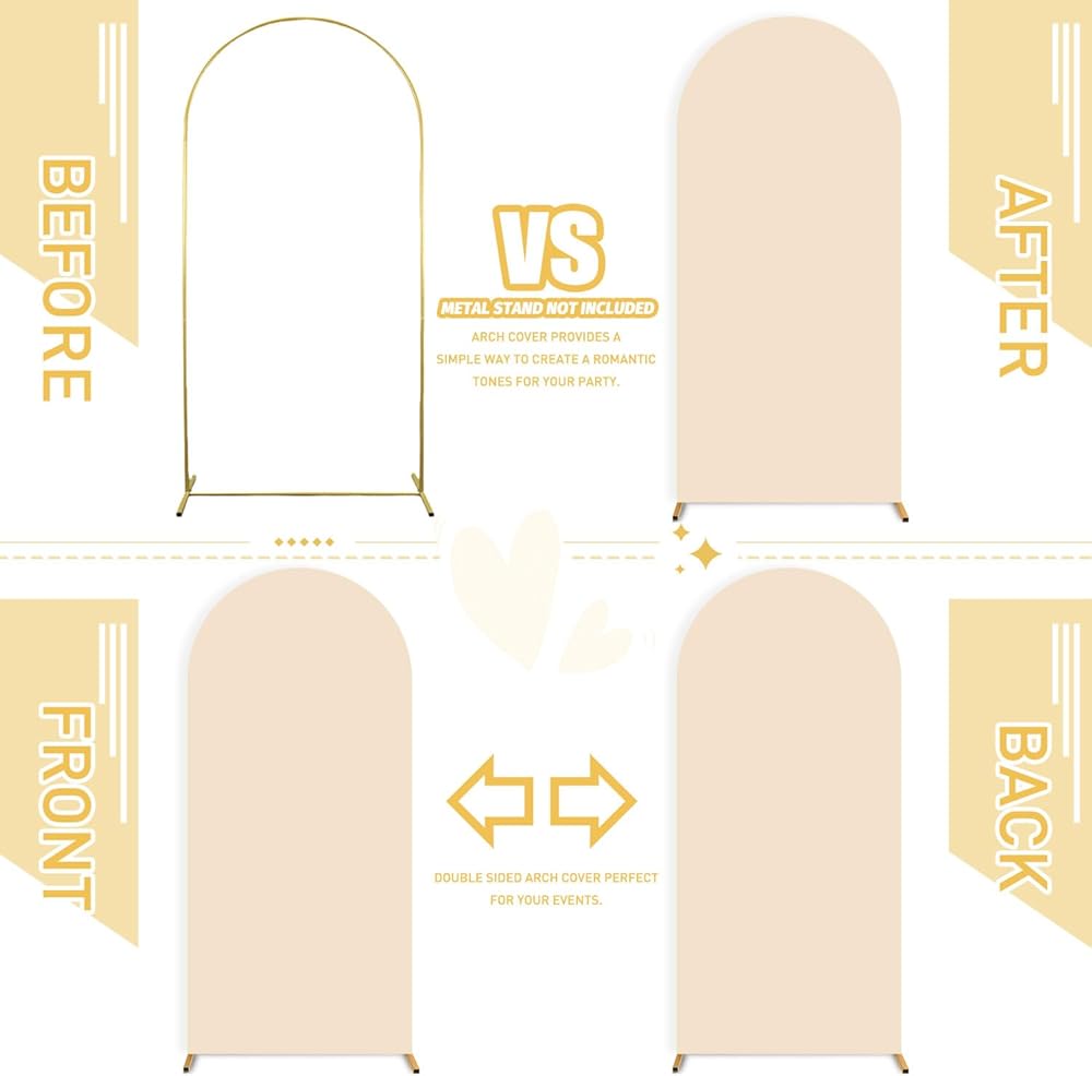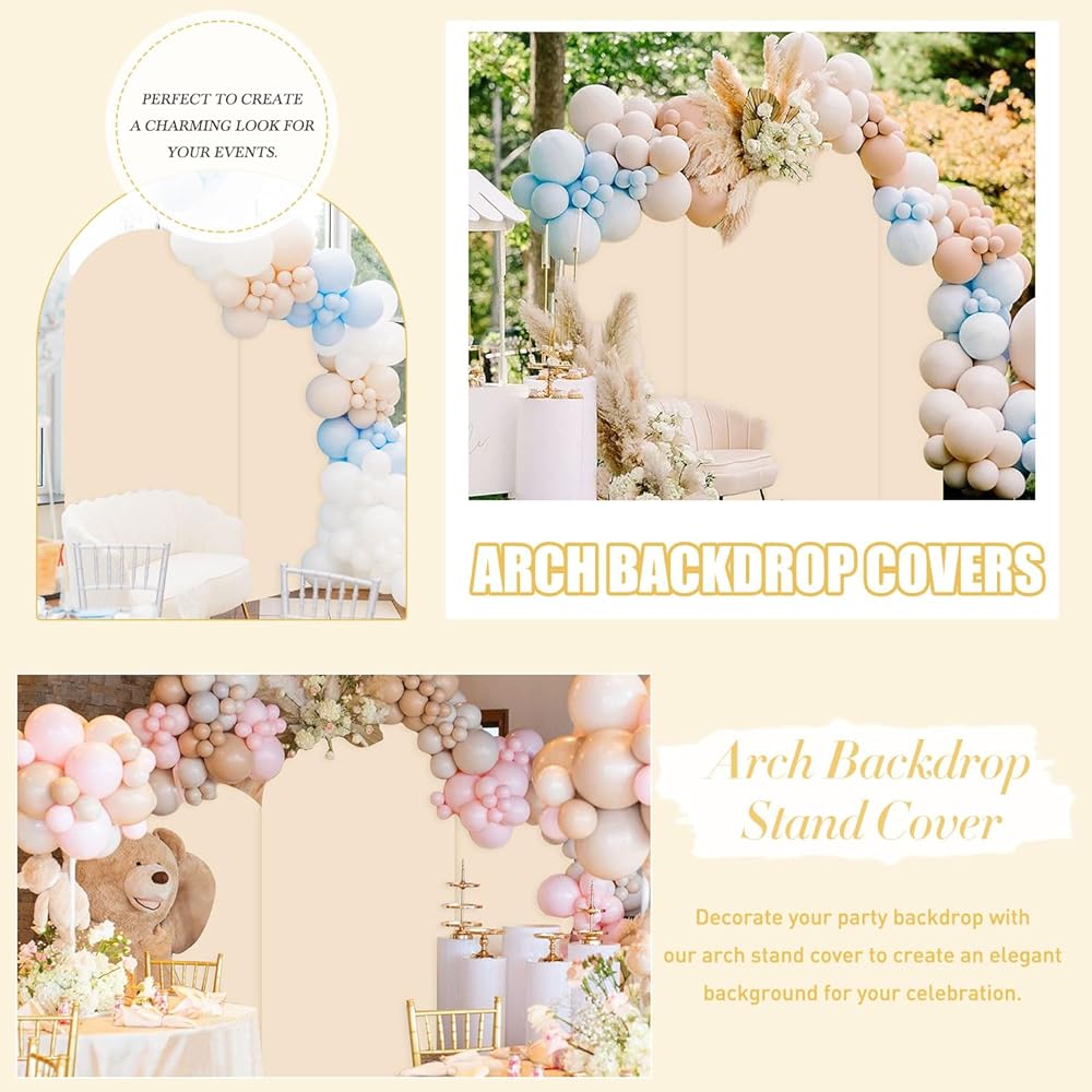 FUHSY Beige Arch Covers Set of 2 Spandex Fit Arch Stand Covers 7.2FT, 6FT Arch Cover Stretchy Backdrop Fabric Chiara Backdrop Stand Covers for Birthday Party Celebration Graduation Wedding Arch Decor