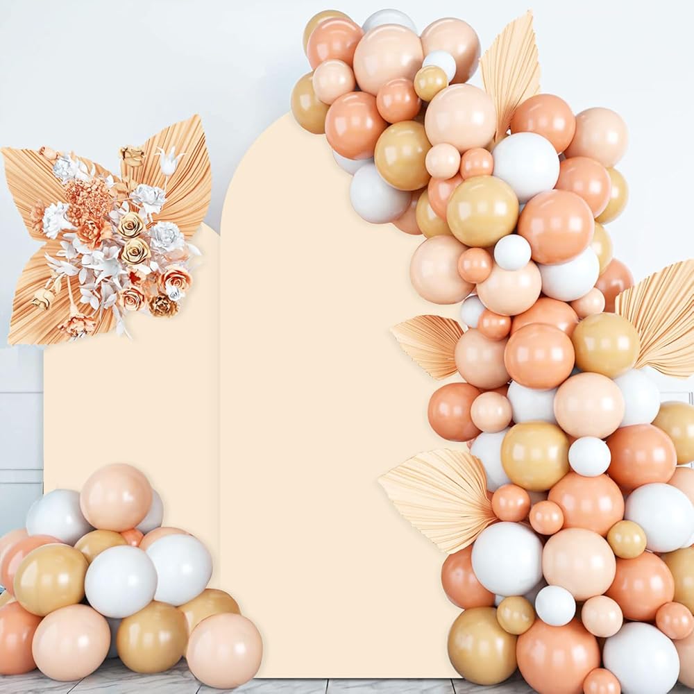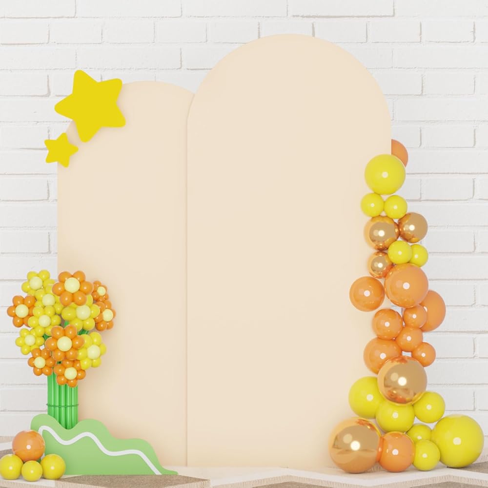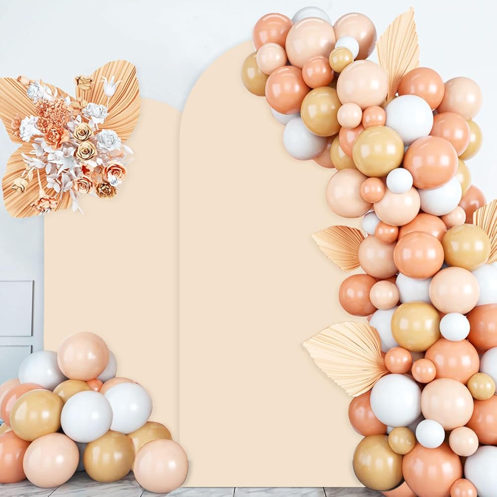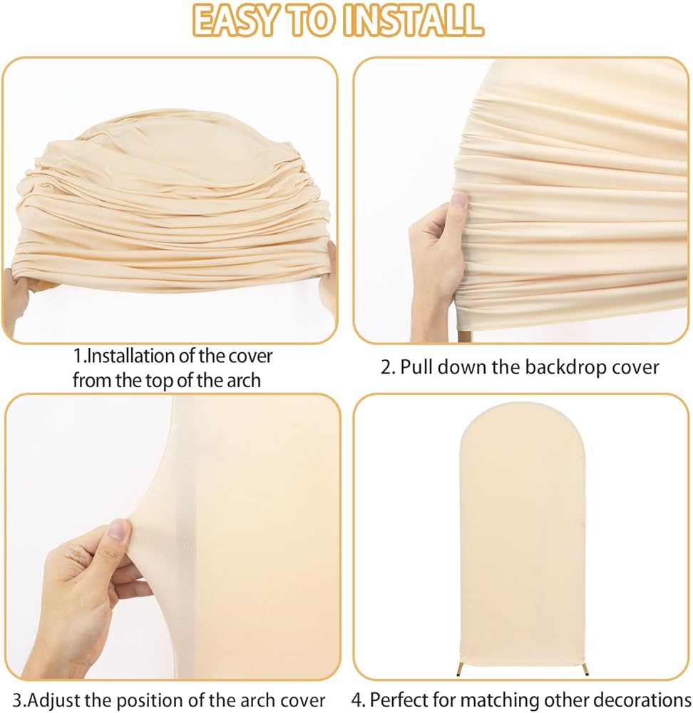 FUHSY Beige Arch Covers Set of 2 Spandex Fit Arch Stand Covers 7.2FT, 6FT Arch Cover Stretchy Backdrop Fabric Chiara Backdrop Stand Covers for Birthday Party Celebration Graduation Wedding Arch Decor