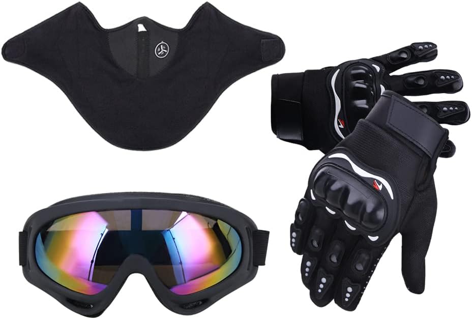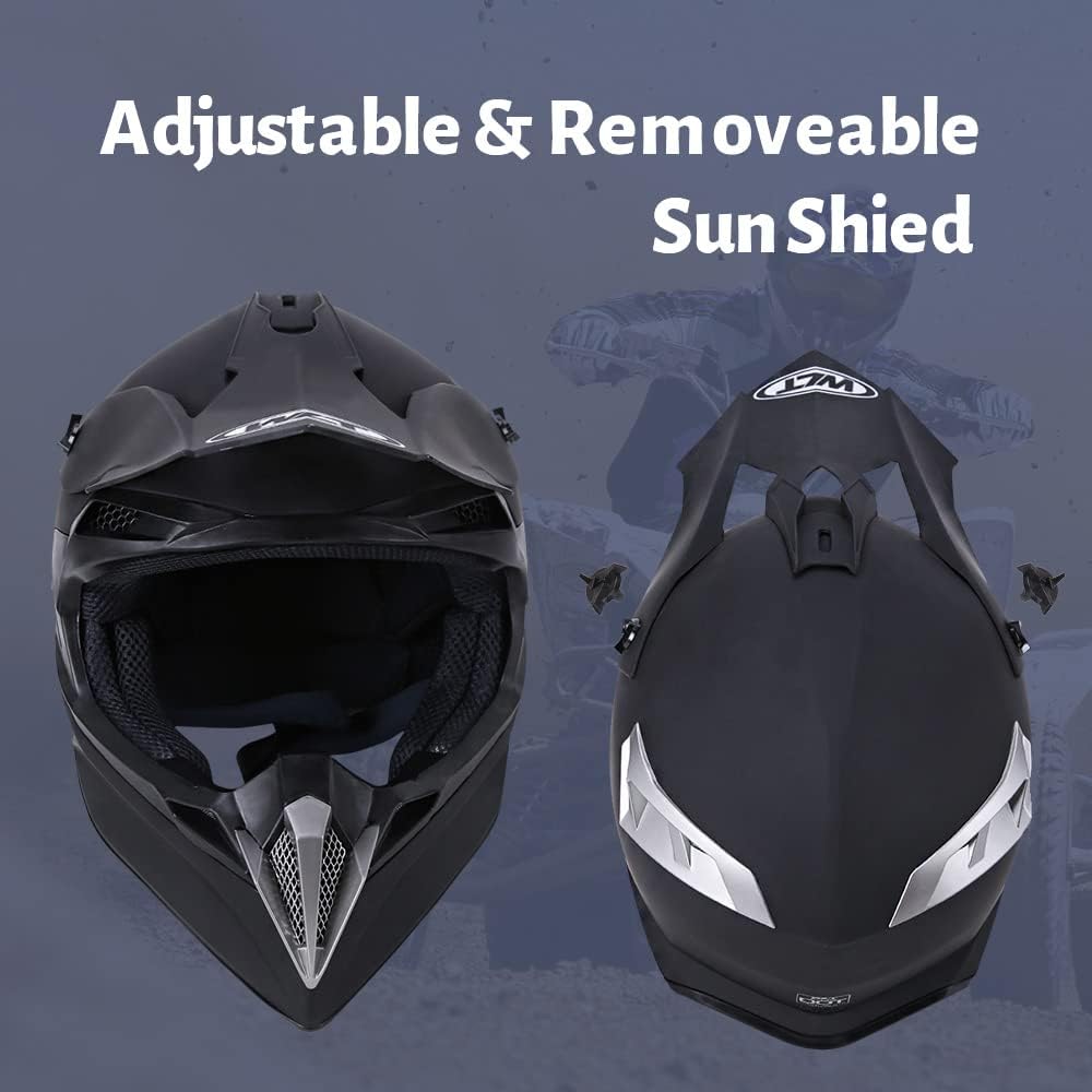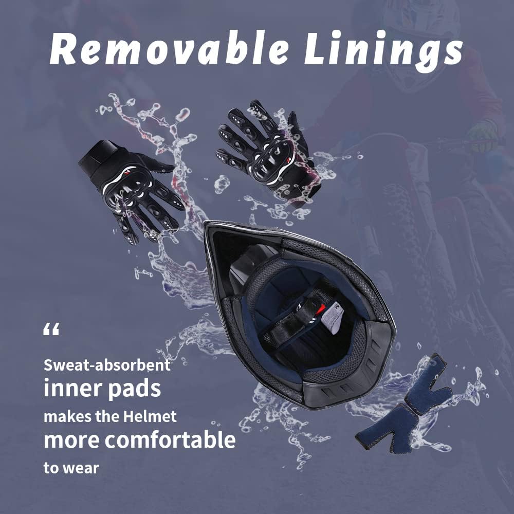 With Goggles Gloves and Mask - OUMURS Dirt Bike Helmet include the goggles, gloves and mask which you need to in driving. Put on the accessory equipment, windproof and UV resistant, can resist the interference of the sun and give you a more clear and wide vision in riding
