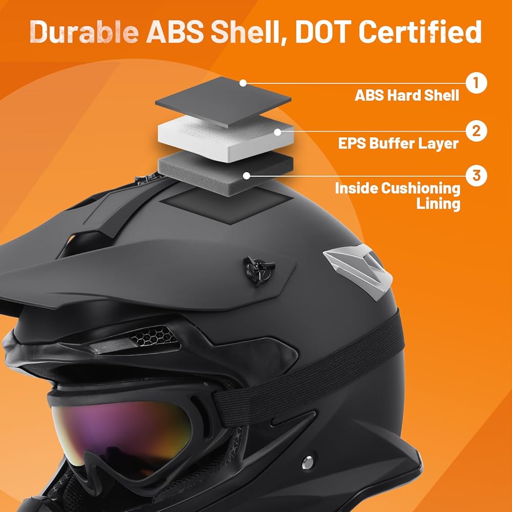 Safe and Reliable - The OUMURS Dirt Bike Helmet meets DOT FMVSS-218 Safety Standards,made of high quality ABS shell and EPS linings provide security for your driving, it's a good choice for you as a dirt bike helmet or adult ATV helmet