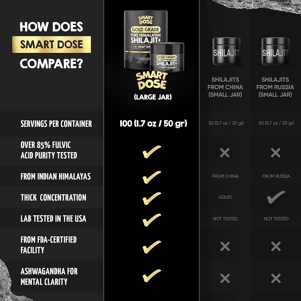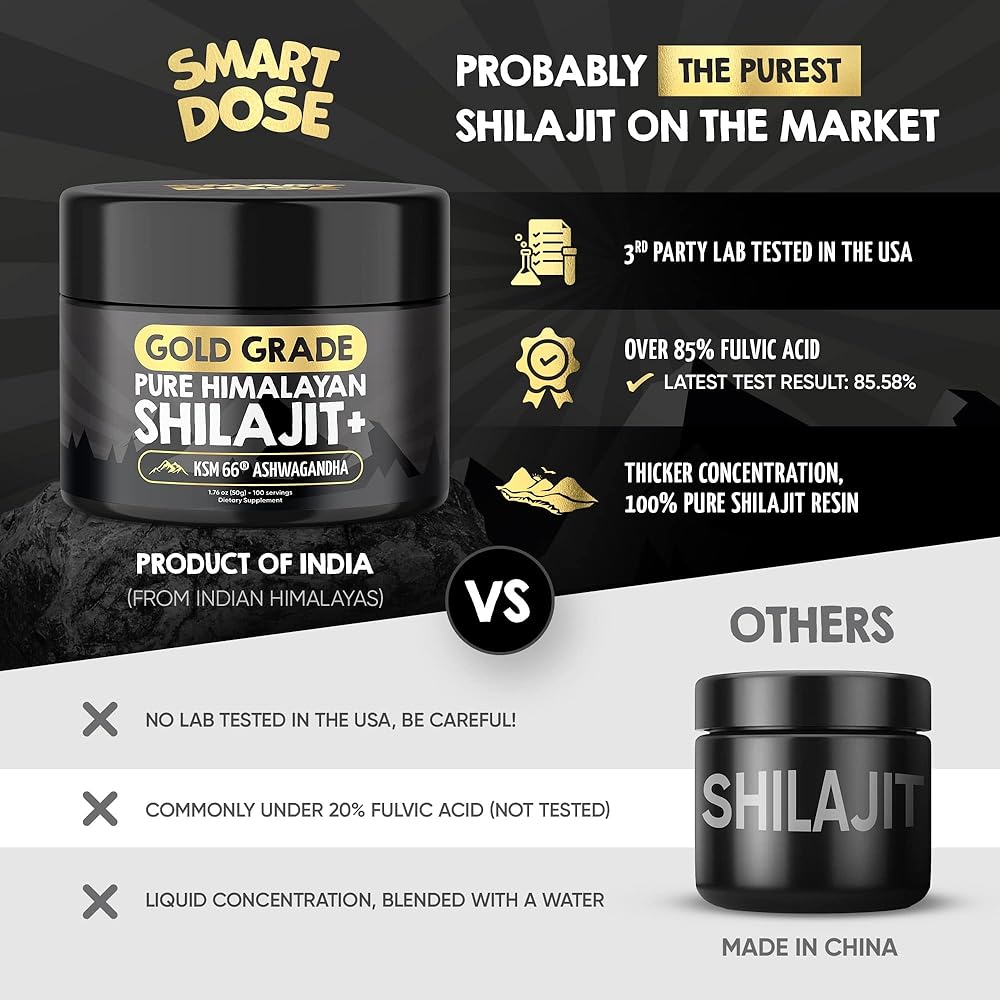 Probably the Purest Shilajit Available: Smart Dose Pure Himalayan Shilajit is one of the purest on the market, verified by third party lab in the USA to contain over 85% fulvic acid. Each batch is tested for purity, toxins and heavy metals, ensuring your safety and delivering the most authentic Shilajit experience possible.