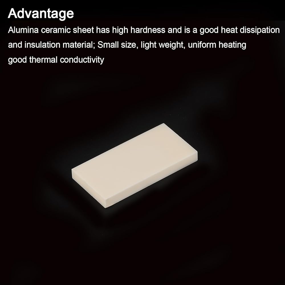 The alumina ceramic sheet, is in size of : 50mm/2-inch length, 25mm/1-inch width, 5mm/0.2-inch thickness