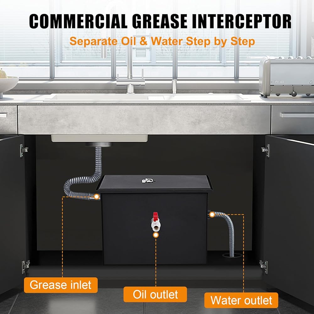 [Easy to install] - This stainless steel interceptor easy to install maintain and cleaning. Just connect the sink and dishwasher plumbing to the grease trap inlet. Then connect the grease trap outlet directly to the drain.