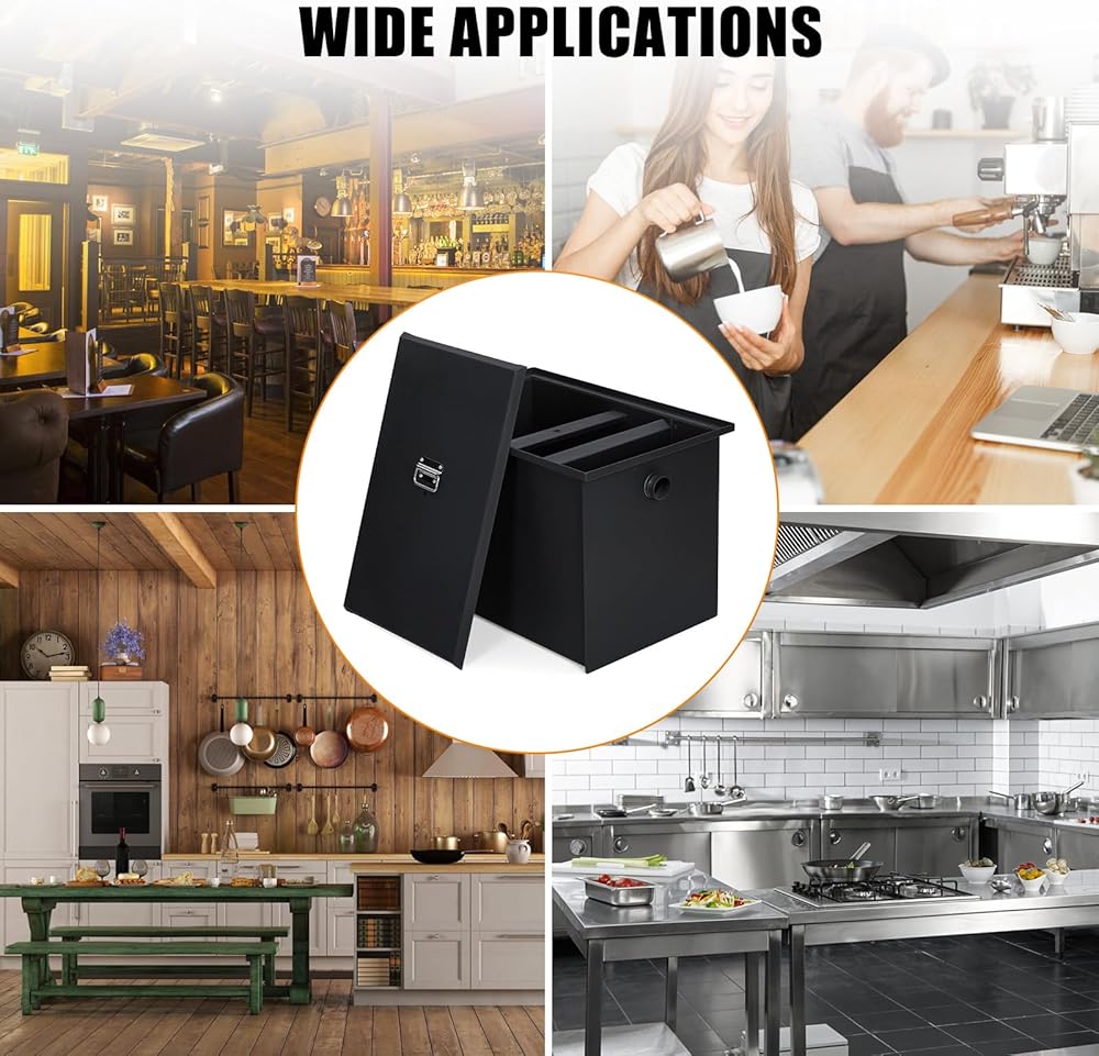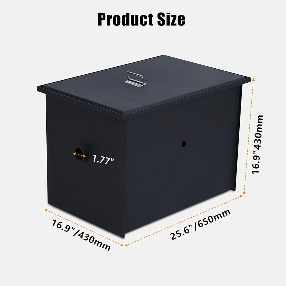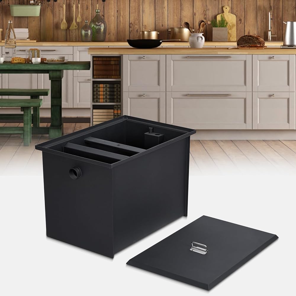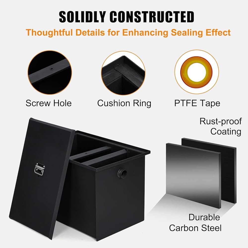 [COATED CARBON STEEL]: Our commercial grease trap is made of heavy-duty carbon steel, features durability and sturdiness. which is sturdy, durable, rust-proof, anti-corrosion, hard to deform, easy to clean and has a long service life.
