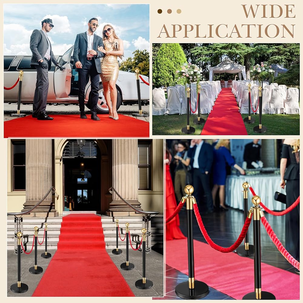 The rope safety barriers can be placed on both sides of the red prom runner floor carpet according to your needs, which can effectively prevent people next to the red carpet from straying into the red carpet and affecting the order.