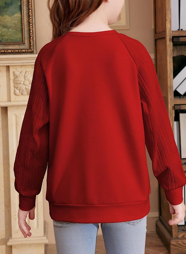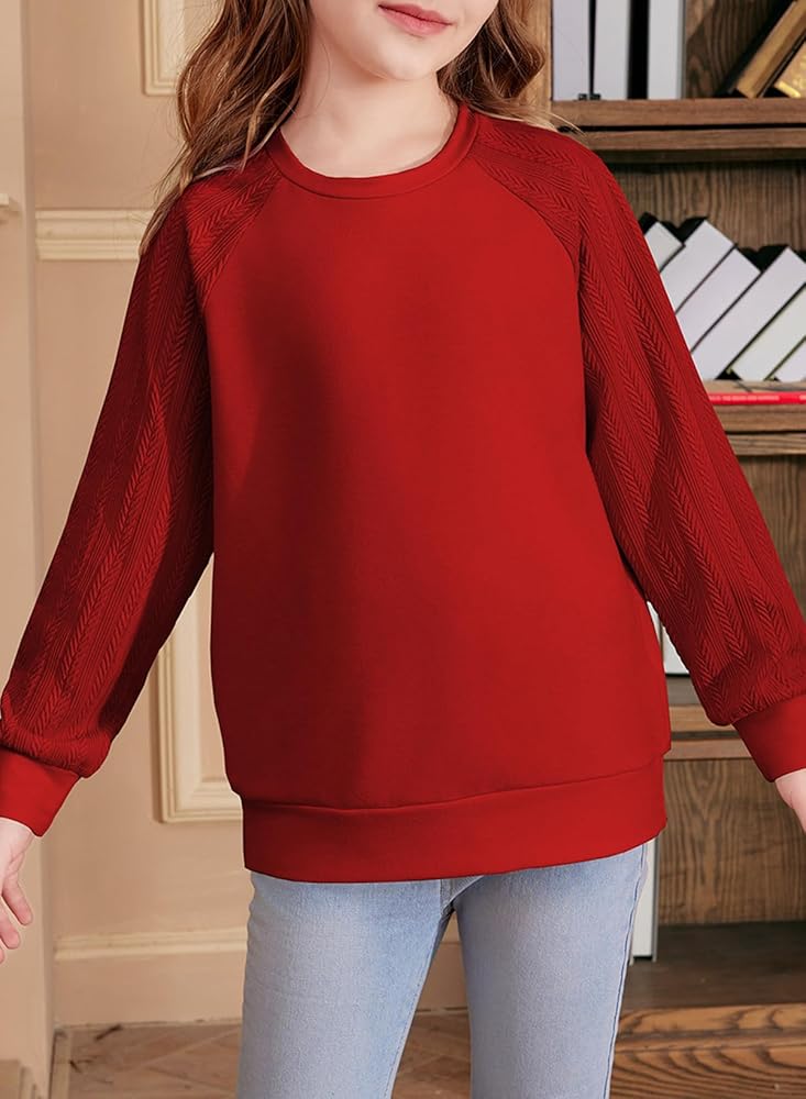FEATURES: This girls cute school sweatshirt features a bell long sleeve with stylish cable knit design. With its comfortable and simple solid pattern, it looks simple and generous, stylish and easy to wear