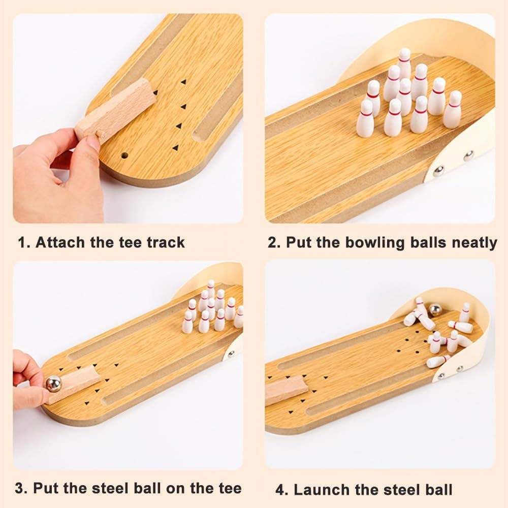 The wooden mini bowling game is made of high-quality wood. Safe, strong, lightweight, and durable