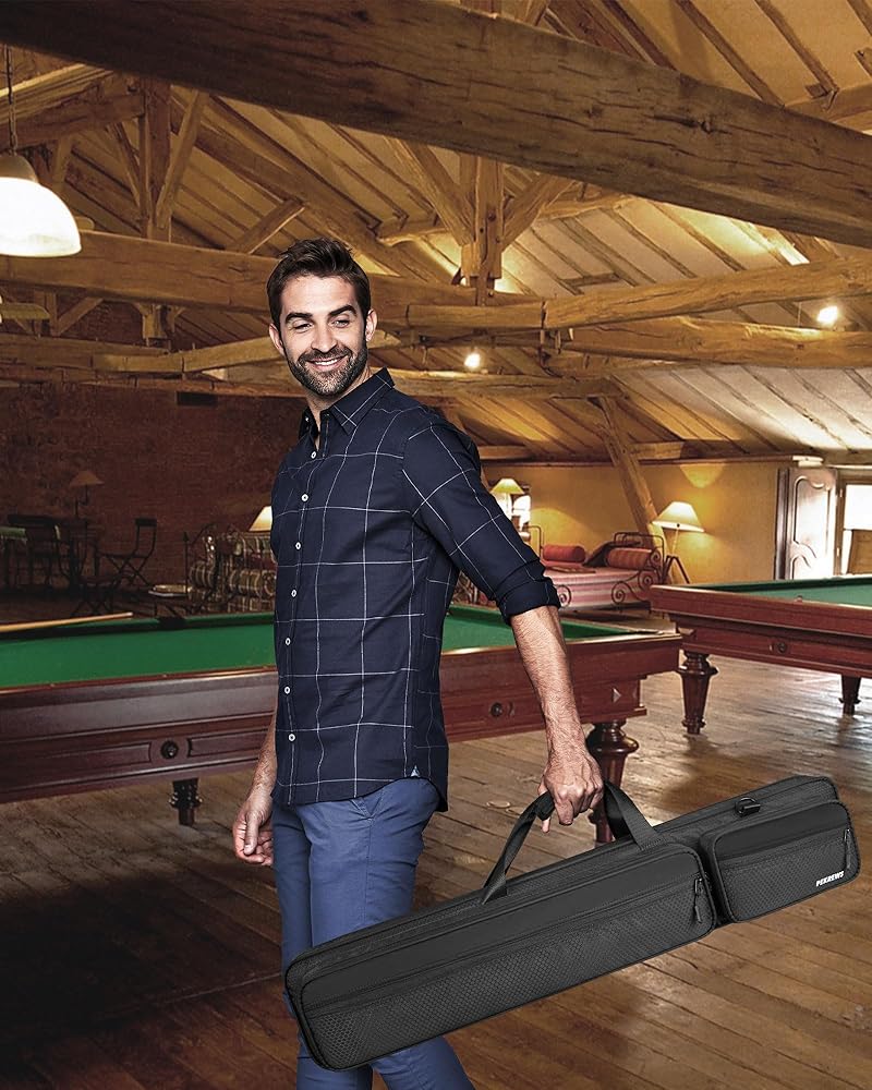 GREAT GIFT CHOICE: The cue stick case is suitable for both casual and professional players to store and transport their pool cue sticks. No matter whether you give it to the husband, wife or friend, the billiard cue case is a wonderful gift choice. Also, when you carry it in a billiard bar/club or a pool game room/ hall, you will make a nice impression.